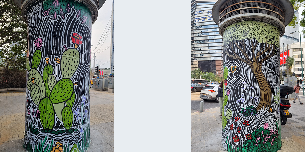 פול רוזנבוים מעצב חזותי רב־תחומי, עלה מקולומביה לפני כ־20 שנה, בעל תואר ראשון ותואר שני בתקשורת חזותית מאקדמיה בצלאל. הצייר על עבודתו: "אני רוצה להכניס את טיפה יותר טבע לעיר על ידי ציור צמחייה מקומית על פירי בזק. המבנים האלה, שלרוב אינם זוכים לתשומת לב, יכולים להפוך לתזכורת ויזואלית לצמחים המקומיים ששגשגו כאן בעבר ועדיין מתקיימים סביבנו. באמצעות שילוב צורות ודפוסים אורגניים בהשראת הצומח המקומי, אני מקווה לחזק את הקשר בין המרחב האורבני לעולם הטבעי", לפי אתר עיריית תל אביב־יפו.