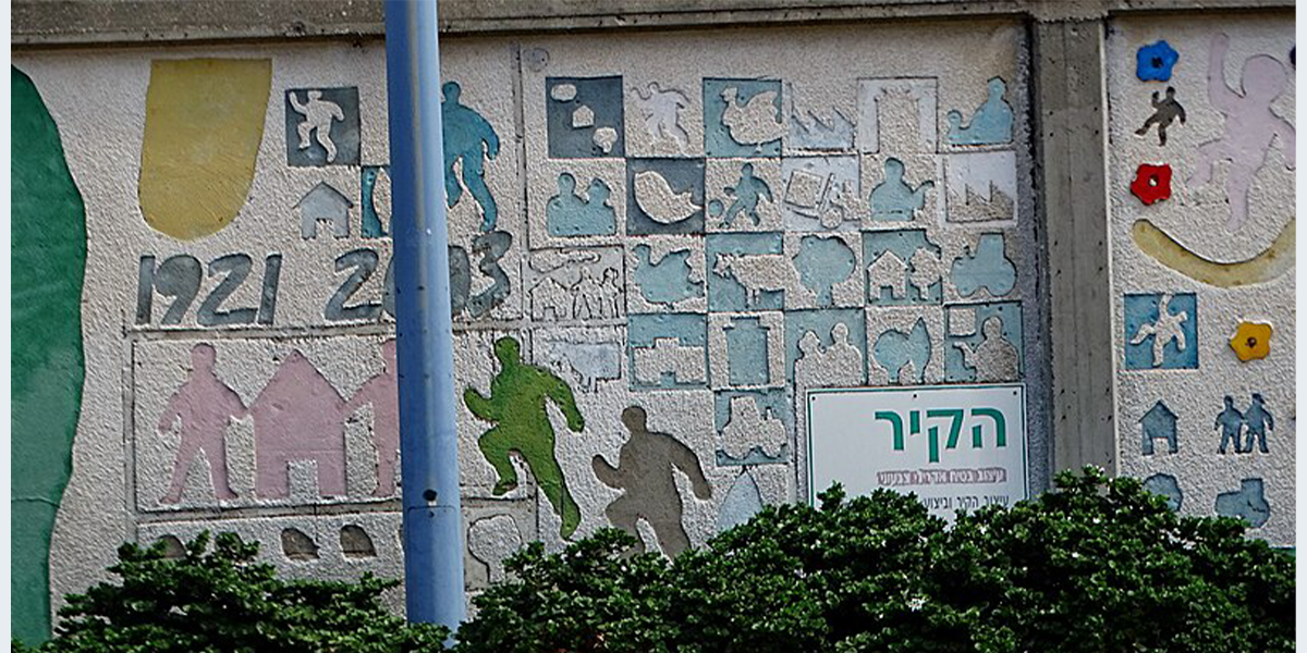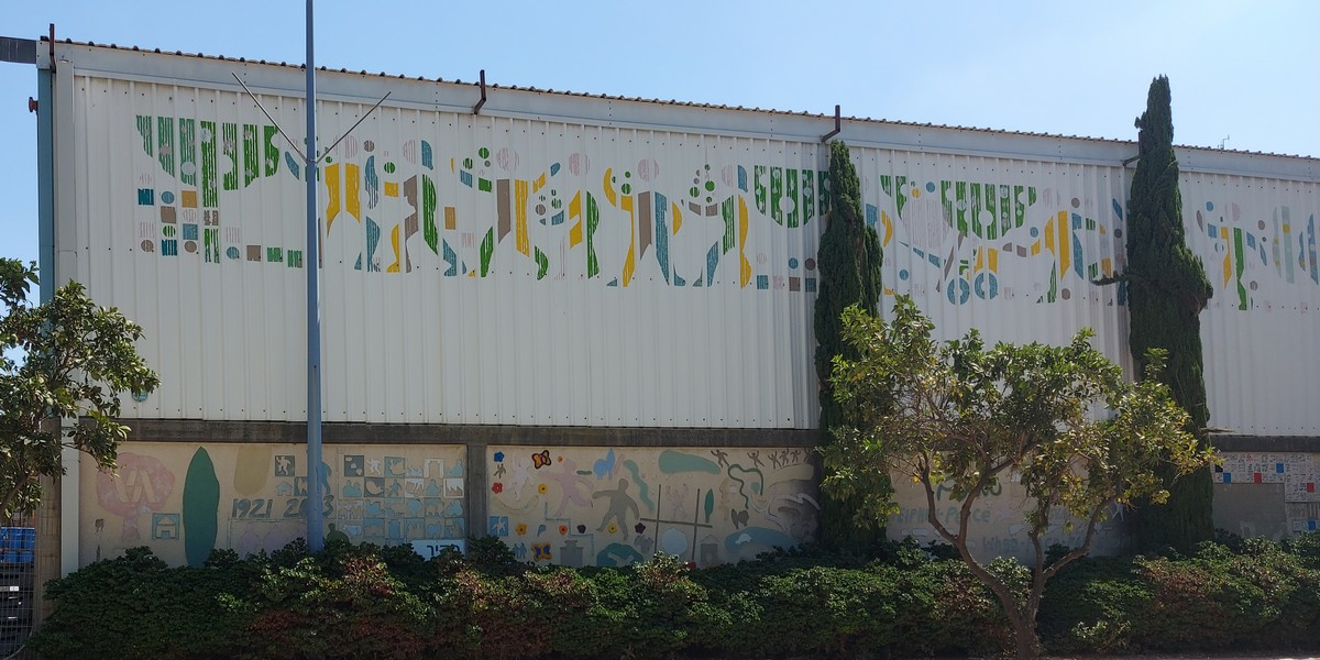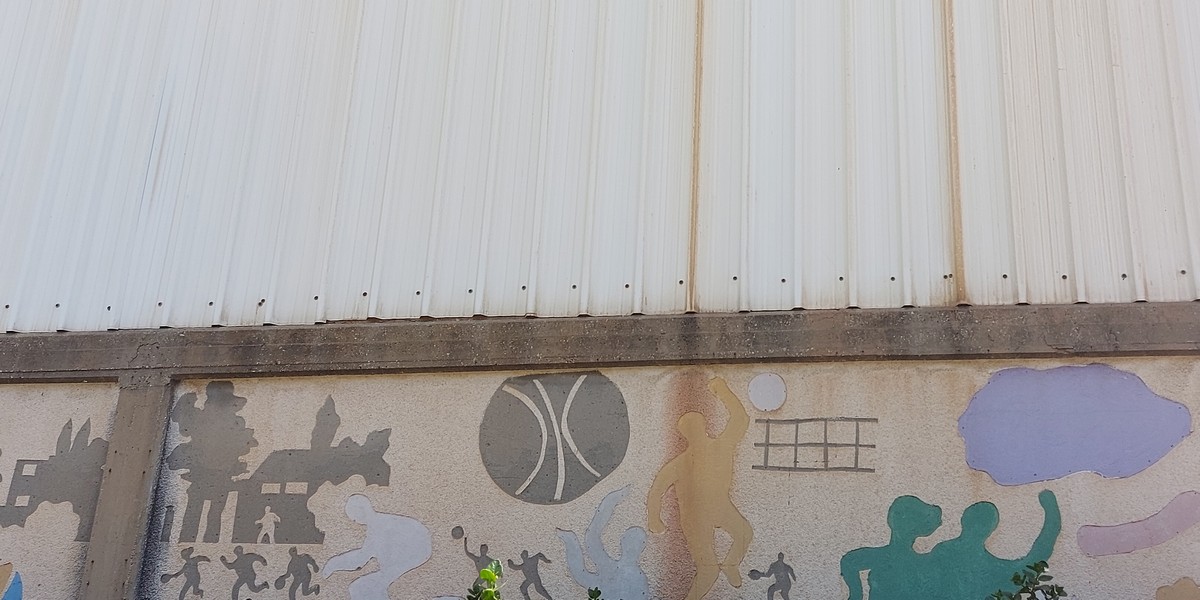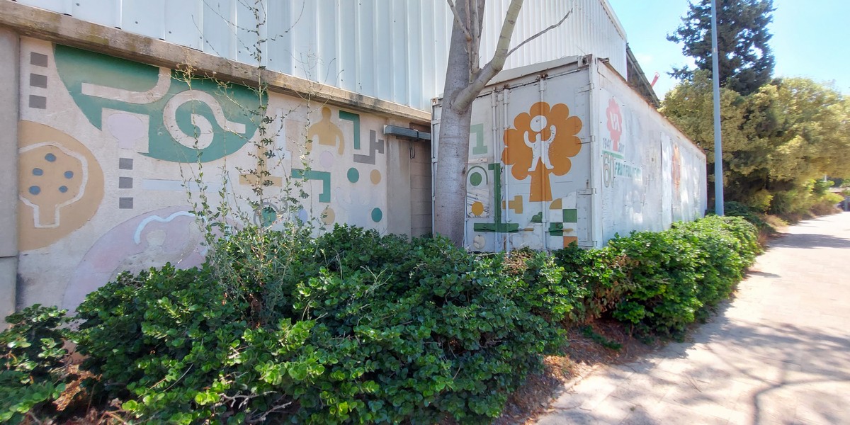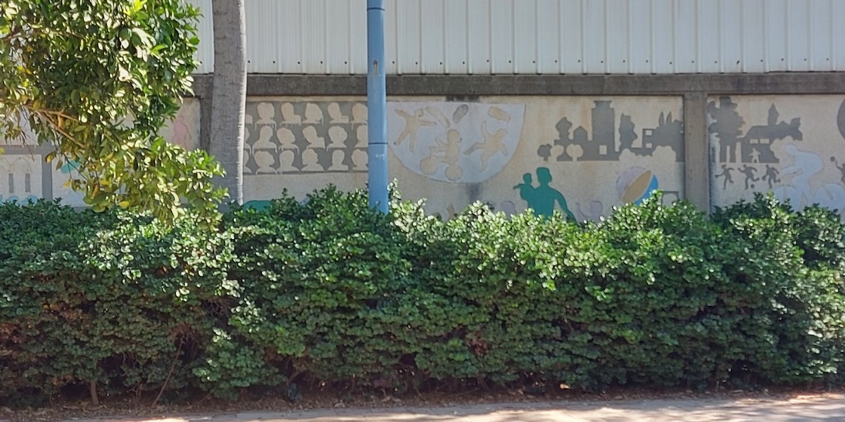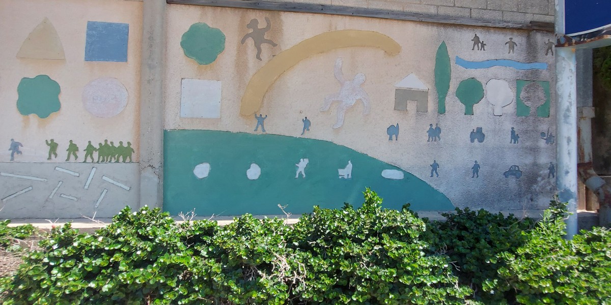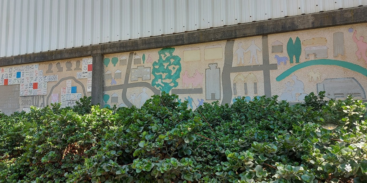 הציור שעל קיר המפעל גן שמואל מזון (גניר) לאורך כביש הכניסה לקיבוץ, מתאר את חיי החברים בקיבוץ.