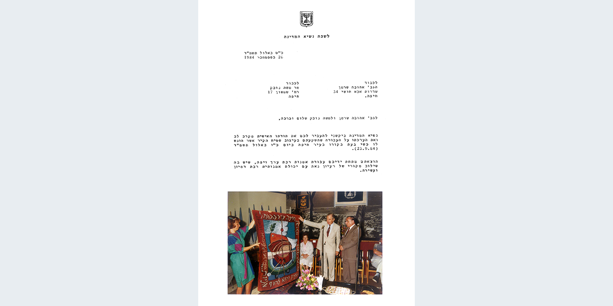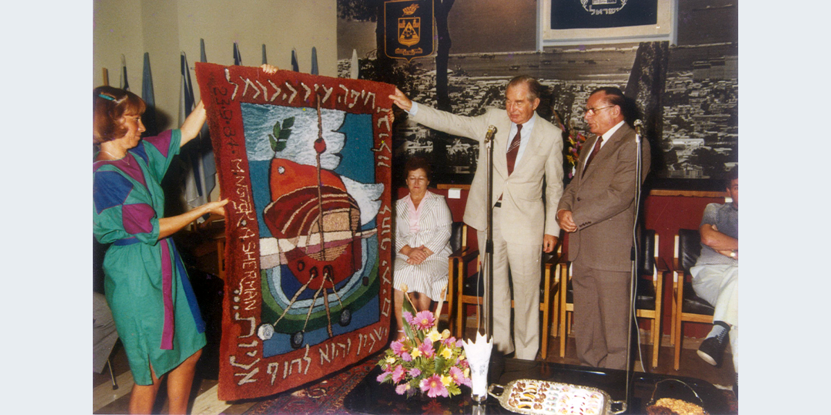 את השטיח העניקה עיריית חיפה לנשיא המדינה חיים הרצוג.