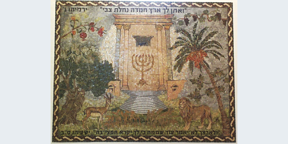 את הפסיפס תרמו לבית הכנסת הבנים של זוג הפרופסורים חפציבה וצבי אייל במלאת להם 90 שנה.