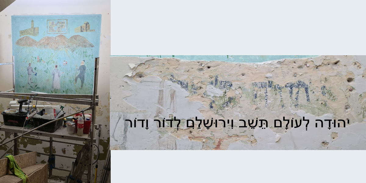 ציור קיר בחדר המדרגות בבית ספר לבנות "תלפיות" לשעבר, כיום אשכול גנים ברחוב העבודה 25 בתל אביב־יפו, ומתחתיו כתוב: "ויהודה לעולם תשב וירושלם לדור דור" (יואל ד, כ). את הציור ציירה הציירת בלהה שחראית־פרידמן, שהייתה מורה לציור במשך 33 שנים בבית הספר הזה, במועד לא ידוע בשנים 1948–1960. את חשיפת הציור ושימורו ביצע "סטודיו תכלת" בהזמנת עיריית תל אביב־יפו.