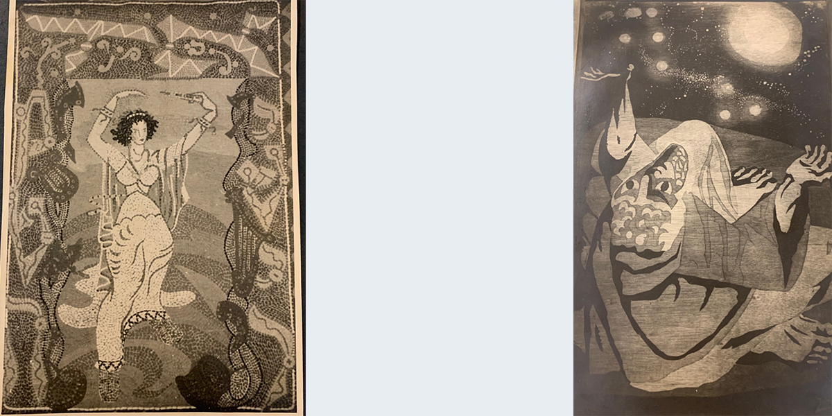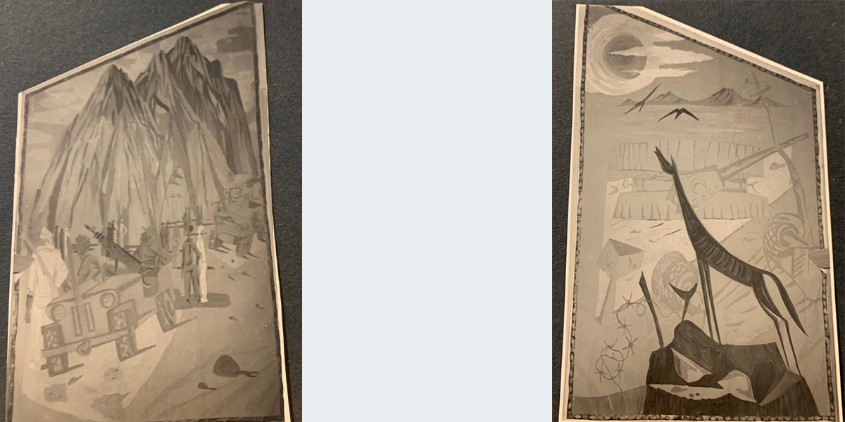 קישוטי חג לשהכין האמן אריק קורן ב־1951 לחדר האוכל לכבוד סדר הפסח בקיבוץ אשדות יעקב, שבו היה חבר.