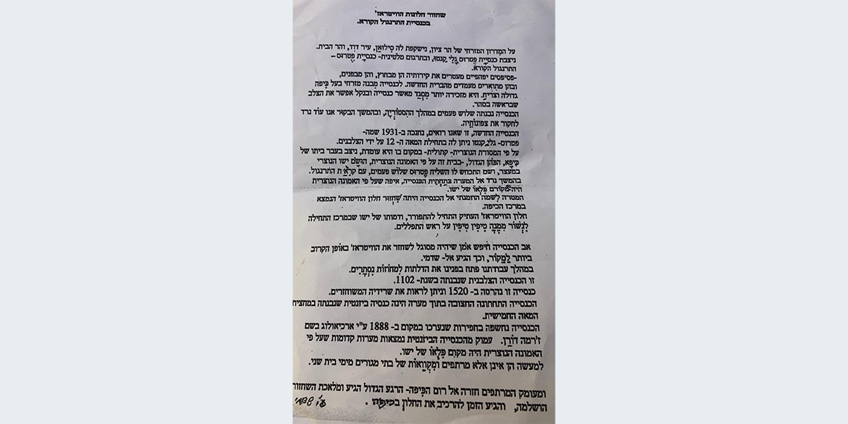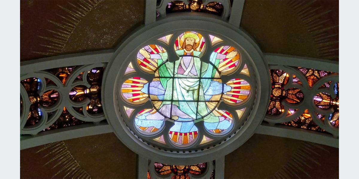 "המטרה לשמה הוזמנתי אל הכנסייה הייתה שחזור חלון הוויטראז', הנמצא במרכז הכיפה. חלון הוויטראז' העתיק התחיל להתפורר, ודמותו של ישו שבמרכז התחילה לנשור ממנה טיפין טיפין על ראשי המתפללים. אב הכנסייה חיפש אמן שיהיה מסוגל לשחזר את הוויטראז' באופן הקרוב ביותר למקור, וכך הגיע אליי", לפי דברי האמן אברהם שדה (שדמי).