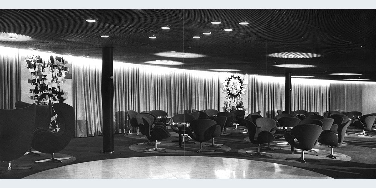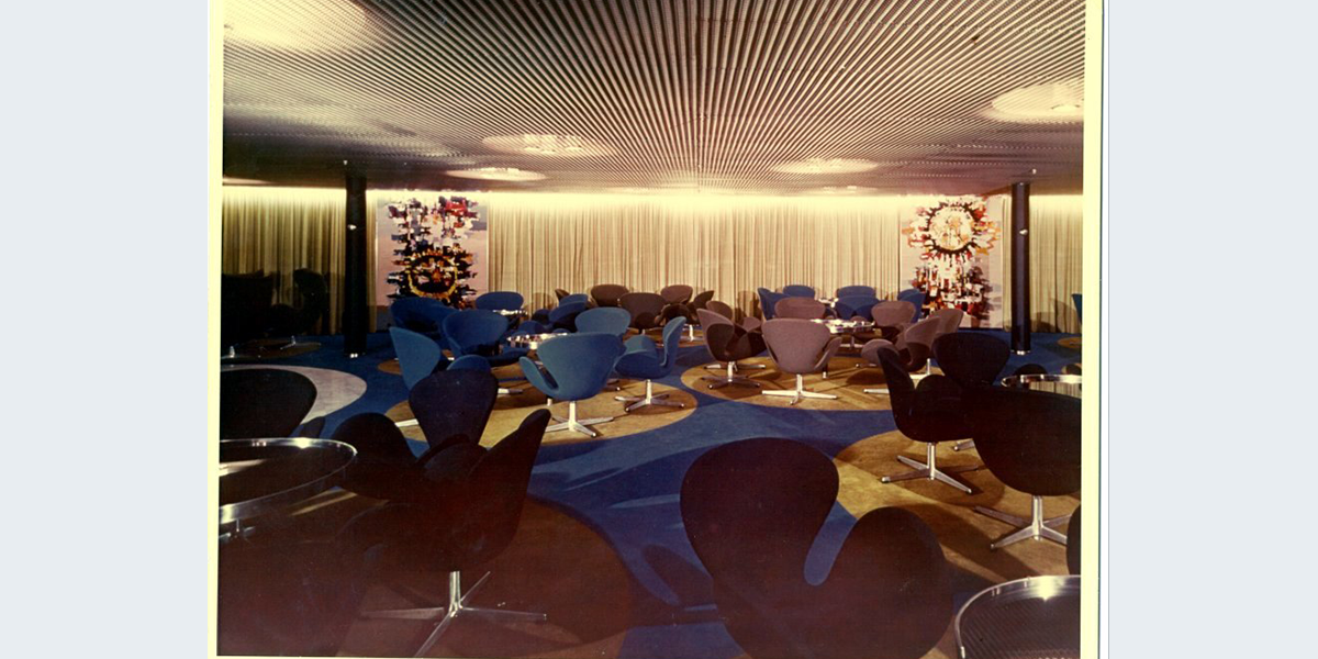 שני שטיחים של האמן יעקב וכסלר: "יום ולילה" שעיטרו את חדר האוכל באוניית צים "שלום".