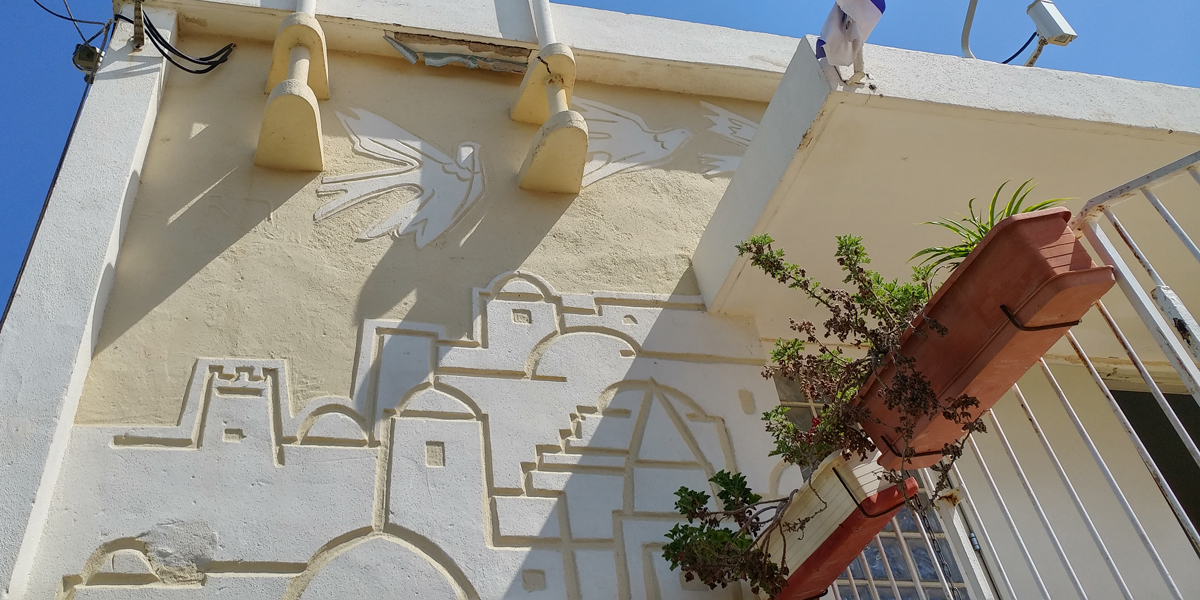 יצירת סגרפיטו של האמן ישראל רובינשטיין על קירותיו החיצוניים של בית הספר על שם יוסף שפרינצק (כיום בית הספר אבן גבירול) בקריית שפרינצק בחיפה.