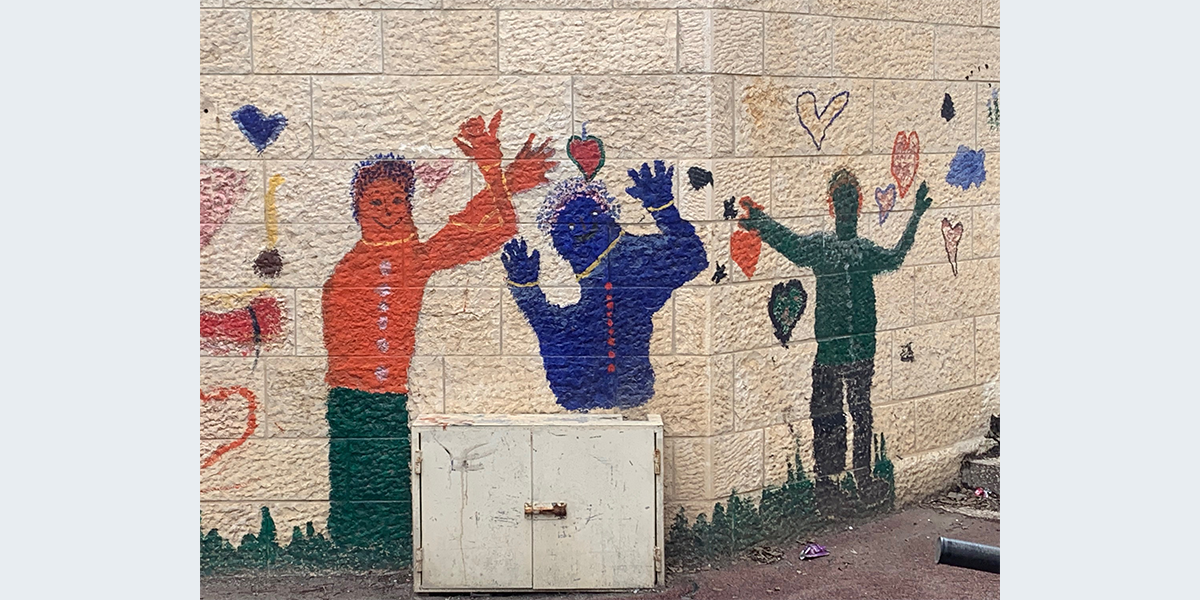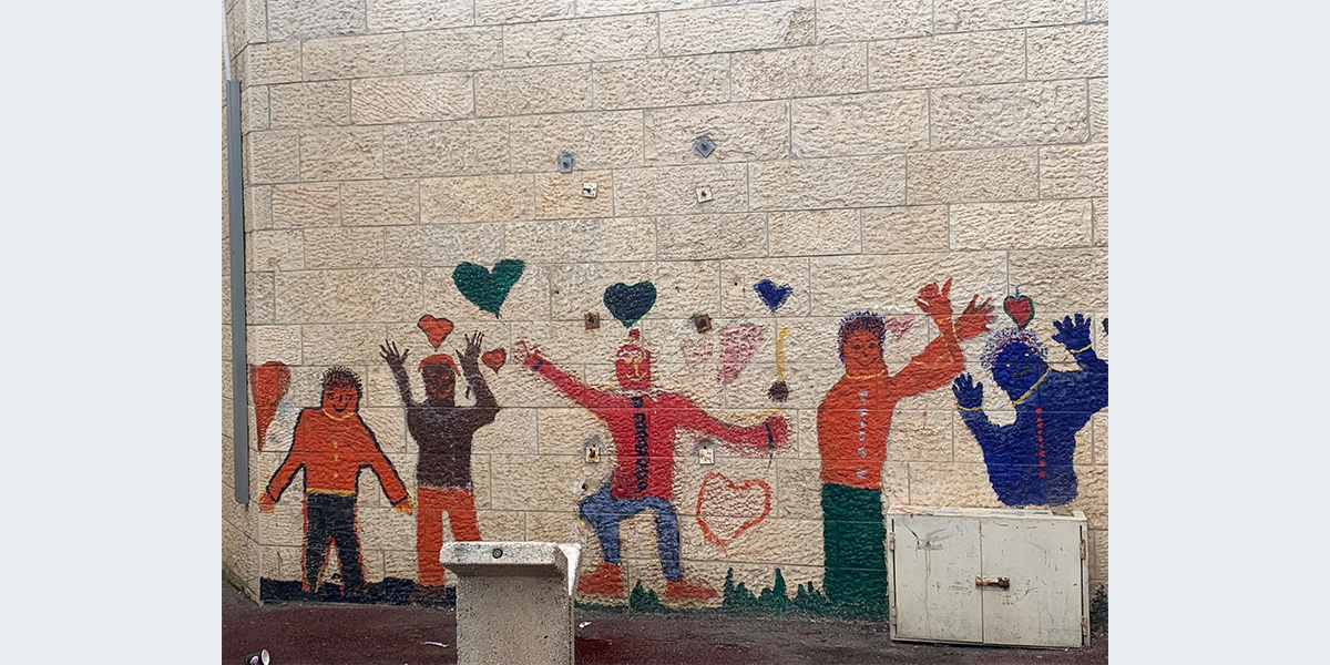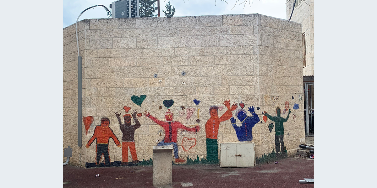 את הציור על קיר הפונה לרחבה הפנימית של בית הספר ציירו התלמידים בהנחיית המורה לאמנות תמרה ברסלר.