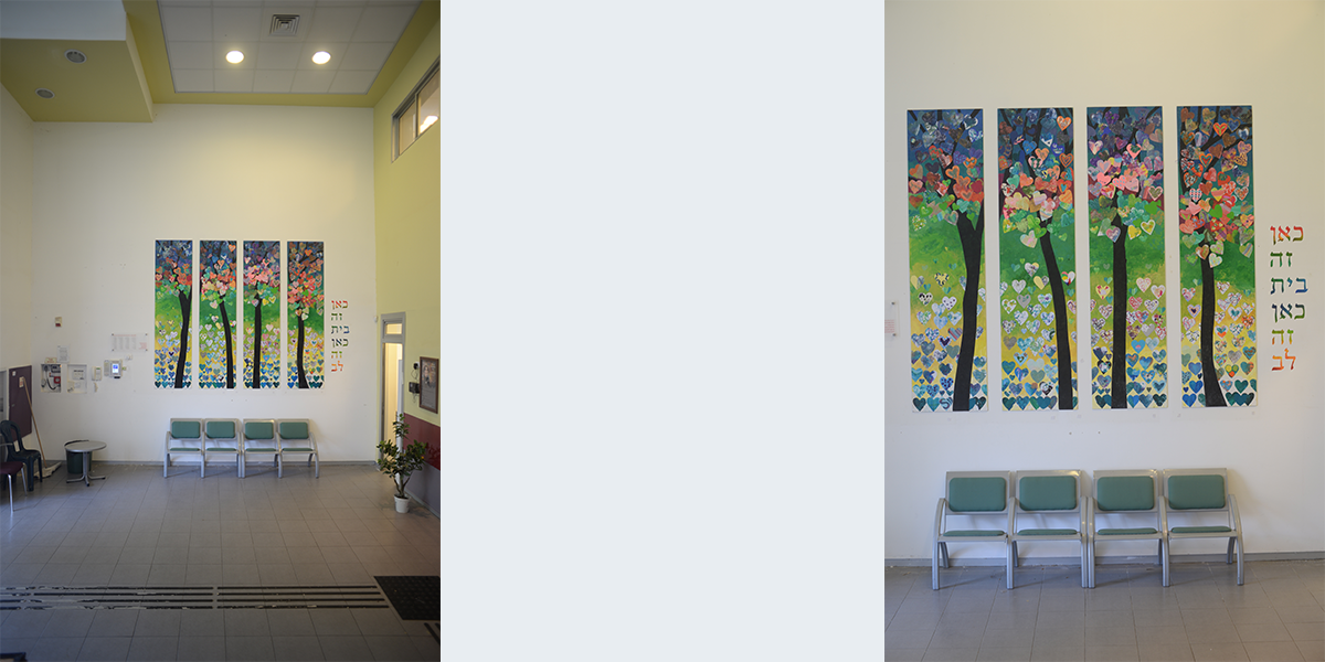 את העבודה עשו משפחות משכונת הר נוף בעת הסגרים של הקורונה בהנחיית האמנית טל לוי. כל משפחה קיבלה ניירות וגואש לצביעה בטכניקות שונות, גזרו לבבות ושלחו חזרה למתנ"ס. במתנ"ס הורכבו הלבבות ליצירה אחת.