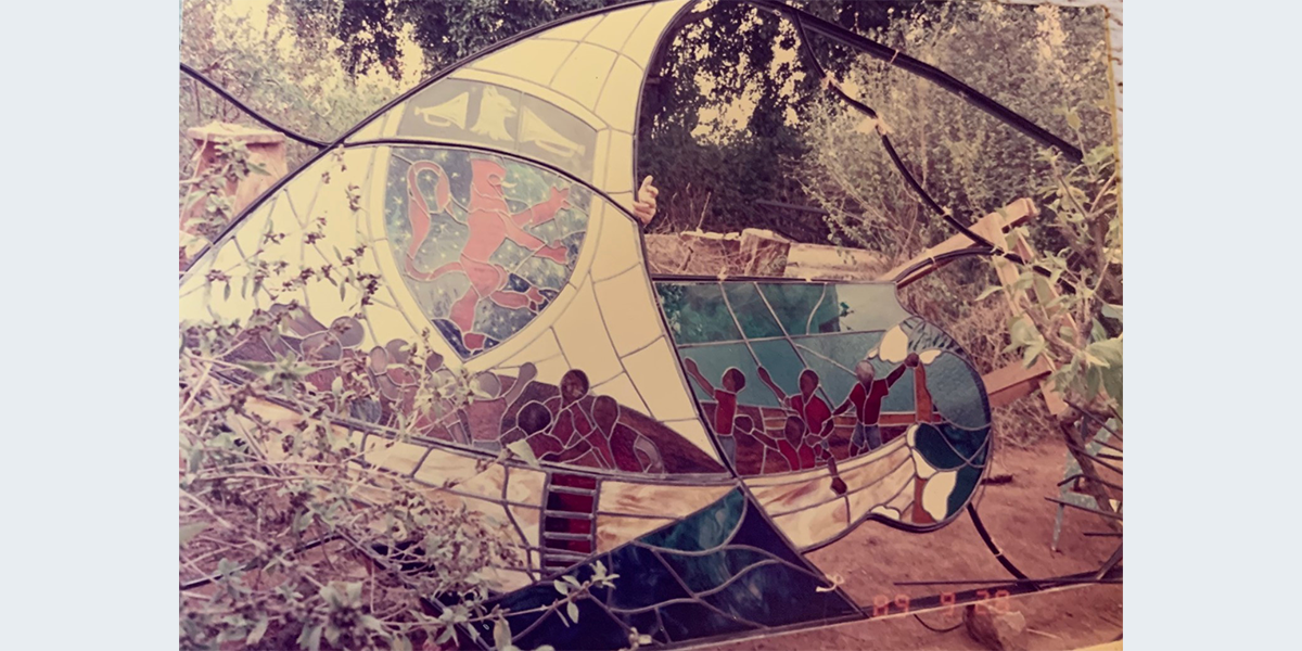 את העבודה יזמה נאני, קרמיקאית גרמנייה שחיה בקניה. היא חיפשה יוצר ויטראז'ים בארץ וכך הגיעה אל האמן אברהם שדה שדמי. הוא התארח בקניה במשך שלושה חודשים ויצר שם את הוויטראז'ים בשיתוף נאני. הוויטראז'ים מספרים על אוניית מיסיונרים שנסחפה בים עד שהגיעה אל חופי אפריקה.