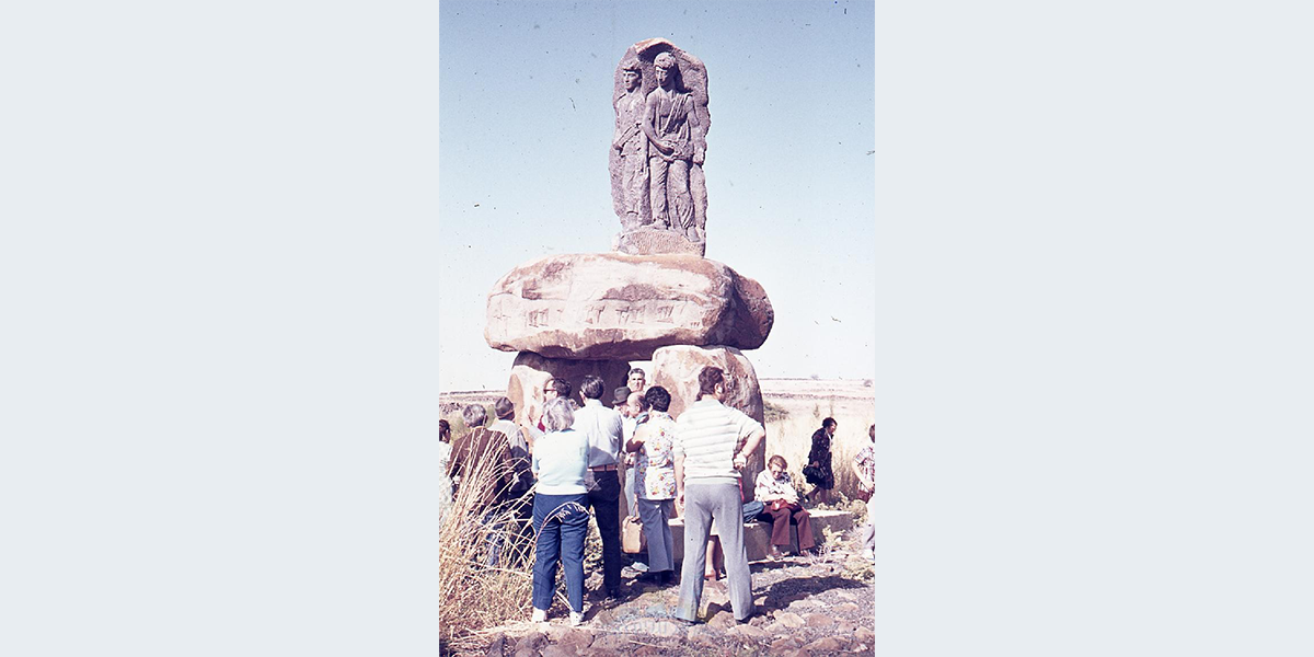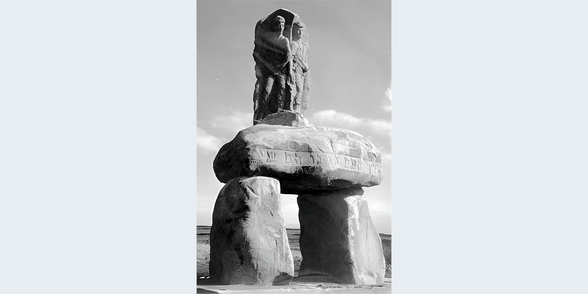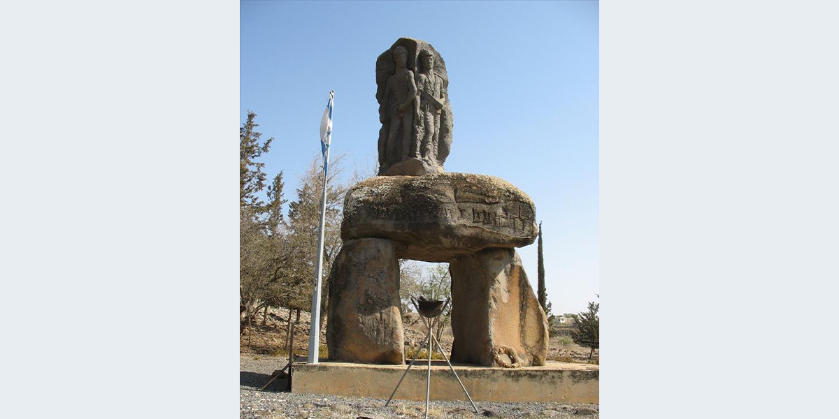 בסוף קיץ 1963 נפלו בכורזים (אלמגור) שני חיילים מהיאחזות הנח"ל, בני מושבים. תנועת המושבים הזמינה אנדרטה לזכרם "שתהיה תל חי של המושבים". הדולמנים שפזורים בכל האזור היוו השראה לדגם שהציע הפסל – דולמן ענק מבזלת, ועליו שתי הדמויות. הדולמן מסמל לדעתו שער לחיים ולביטחון. פסל הזיכרון כולו מסמל בעיניו את כיבוש הנוף על ידי הקרבה אנושית, ואת משימות הנח"ל ויושבי הספר – התיישבות והגנה. אבני הבזלת הענקיות ליצירת הפסל נמצאו בבניית קריית שמונה של היום, וכפרי שכנע את סולל בונה לשמור לאנדרטה ארבע אבנים. הקמת אנדרטת הדולמן הראשונה בארץ הייתה אתגר אדיר לפסל, שראה בעיני רוחו את האבנים מטביעות חותם בשטח לדורות. בעודו שוקד על מלאכת חקיקת הפסוק וביסוס והצבת העבודה באתר, נהרגו עוד 5 חיילים ואזרחים בתקריות נוספות. הפסל, שנכח במקום בעת התקריות, לא הסכים לראות באנדרטה אך ורק את הנופלים הראשונים, כפי שביקשו מזמיניה. העבודה הסתיימה בתום מלחמת ששת הימים וחברי הקהילה סיכמו שיש לחקוק עליה את שמות כל החללים בשדות אלמגור.
