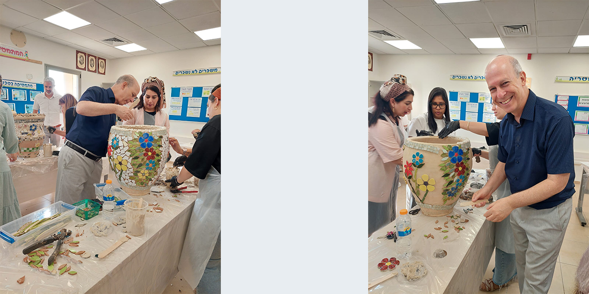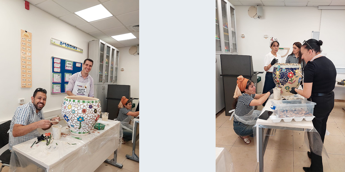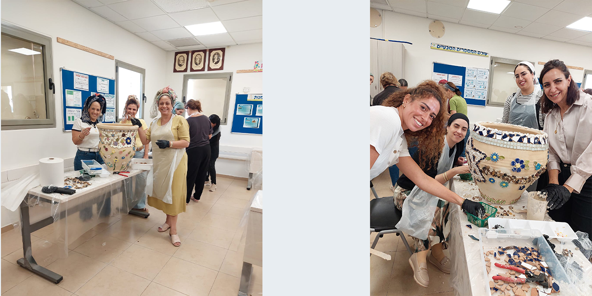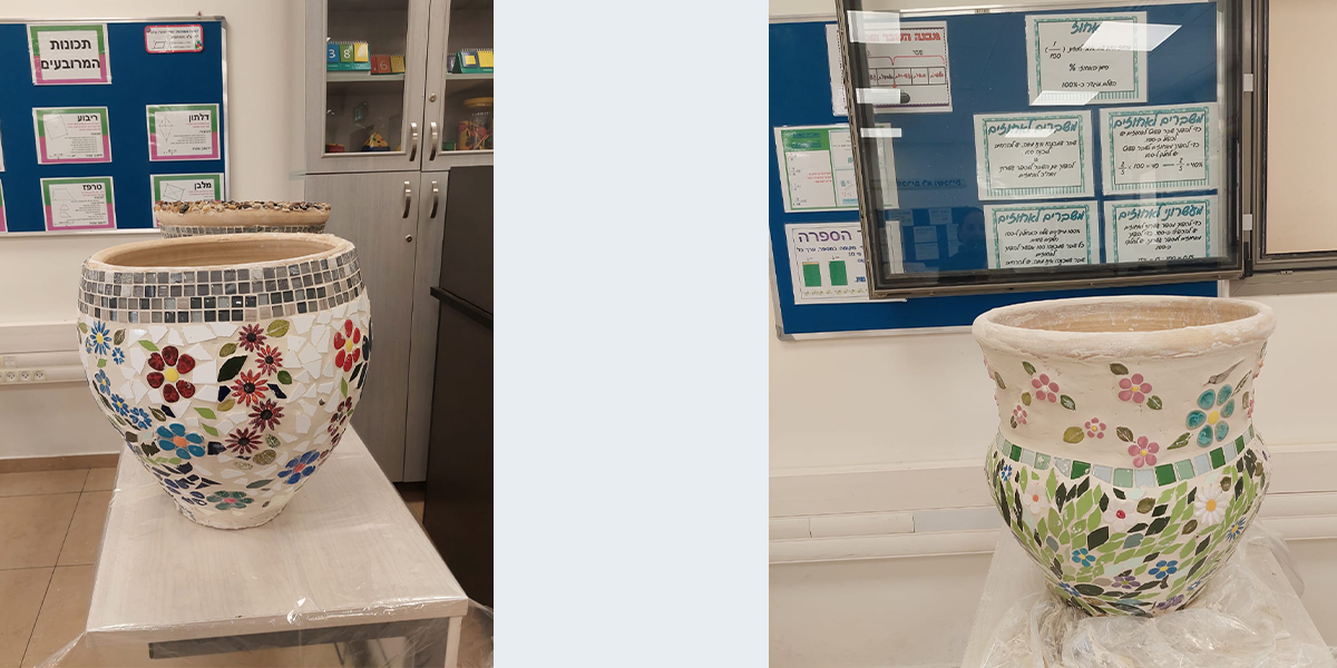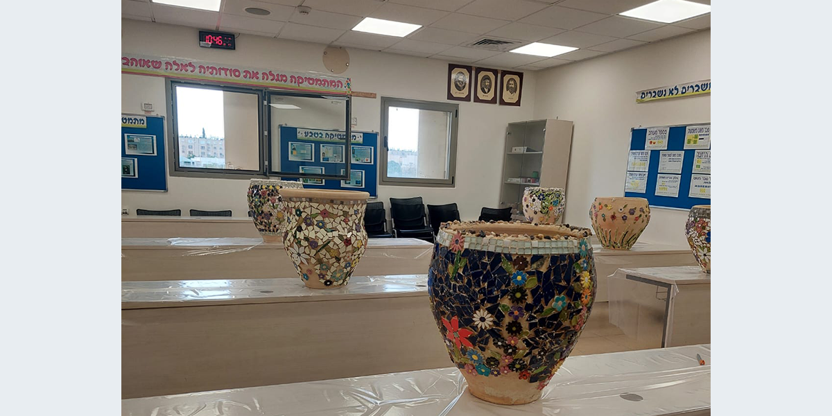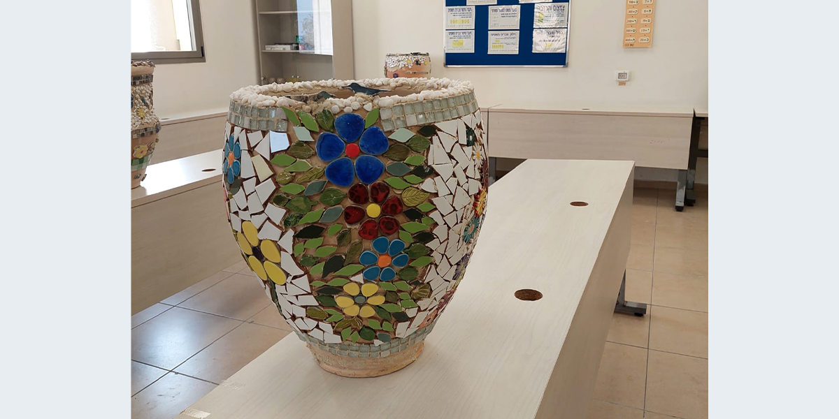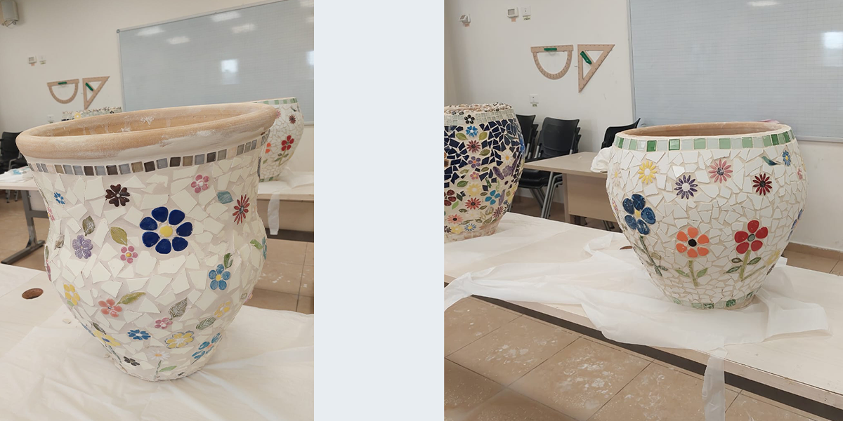 את הכדים לזכרם של עשרת הסטודנטים שנרצחו עיטרו בפסיפס עובדי אקדמית חמדת בהנחיית האמנית ציפי נחליאלי.