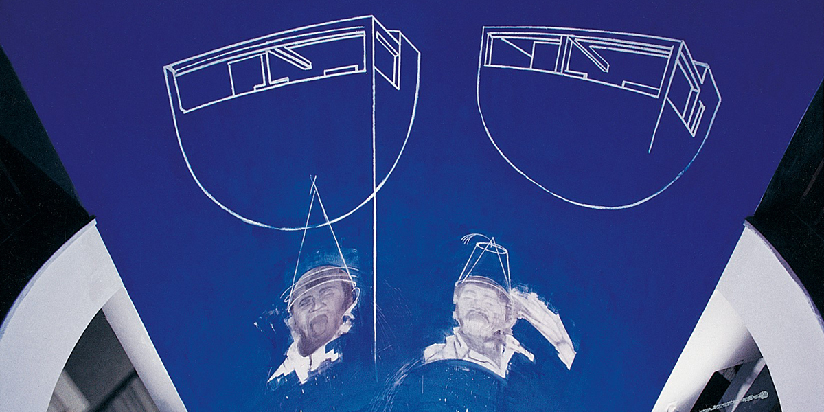 - אוטופיה – לצד ראשי הנערים הצפים במרחב הכחול, ציירה גטר גגות של בניינים מודרניסטיים בסגנון הארכיטקטורה האוטופיסטית של אדריכלי הקיבוץ, כמו שמואל מסטצ'קין, אדריכל בניין הספרייה ויעקב (קובה) פינקרפלד, שתכנן את בית הדפוס של מרחביה. בניינים אלה, שמופיעים בציור בפרספקטיבה-עלית, שורטטו בקווים ישרים ולבנים, מייצגים אייקון של אמונה רציונלית בעתיד ובקדמה, שאפיינה (בעבר) את המהפכה הציונית ואת ההתיישבות הקיבוצית. מתוך העניין שלה בהדהוד המודרניזם האדריכלי האוטופי, שהעסיק אותה כבר בעבודתה המוקדמת, רואה גטר בגגות הבניינים את המקום האחרון (וגם הראשון) ממנו אפשר להשקיף אל העתיד, ואל העבר.