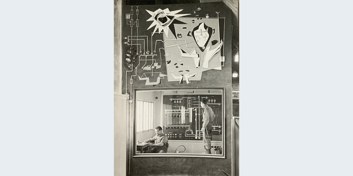 עבודת קיר בטכניקה של סגרפיטו המשלבת מתכת וזכוכית ובה צורות מופשטות המהדהדות כתב קדום, טבע וטכנולוגיה, ובמוקד דימוי של שמש. העבודה מוצבת בחדר הבקרה הישן של ממגורות דגון שאינו בשימוש.