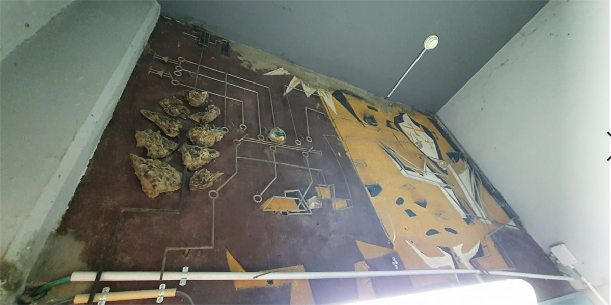 מצב השתמרות היצירה: היצירה נפגמה בשל תאורת הנאון במקום.