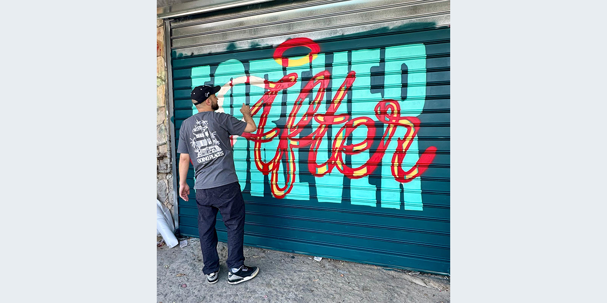 אסף ריסטו, תושב השכונה, מצייר לזכר חבר שנפטר מסרטן. Forever After.