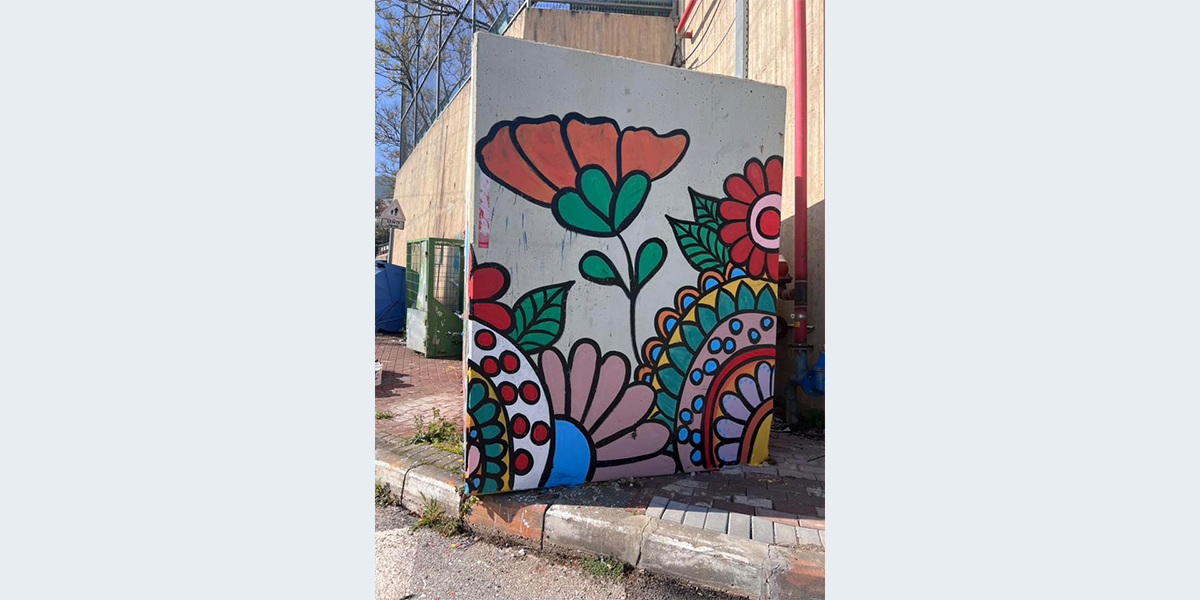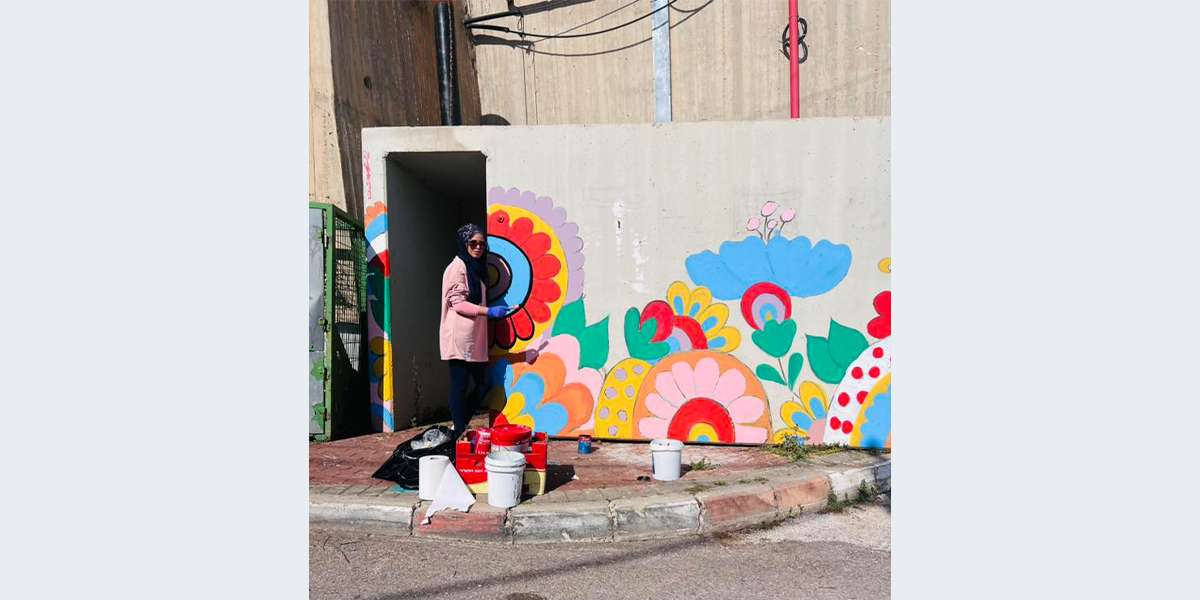את הציור ציירה האמנית עביר זבידאת עם תלמידי בית הספר אל־ביאדר.