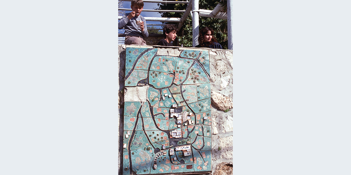 מפת־על של היישוב עין הוד. המפה איננה מוצפנת והדרום הוא כלפי מעלה.