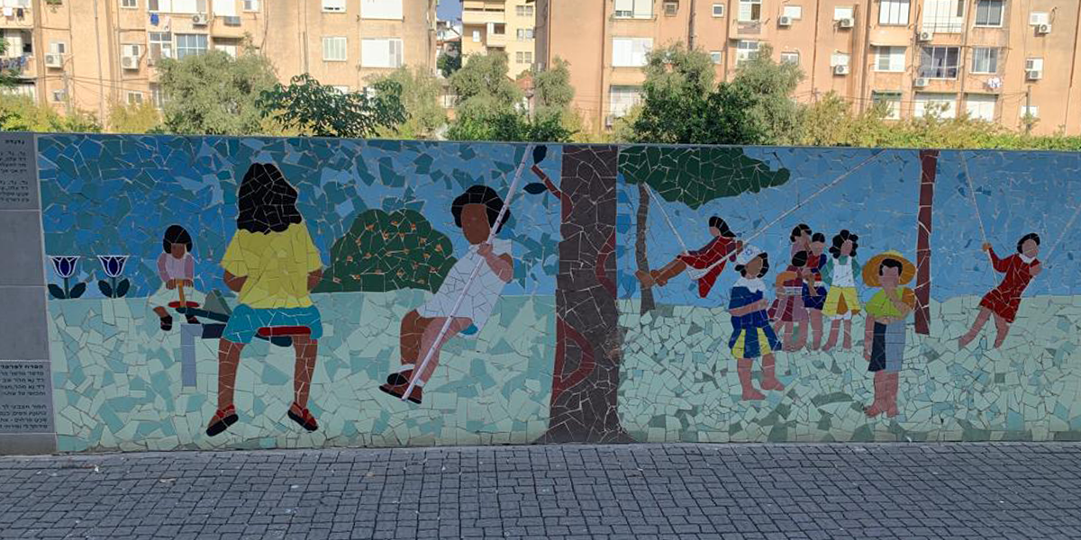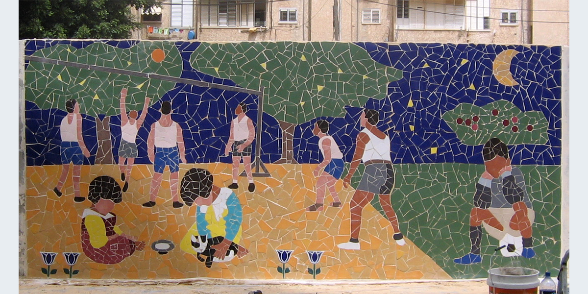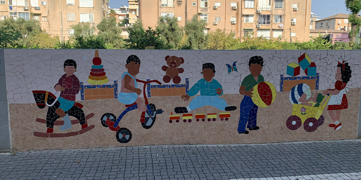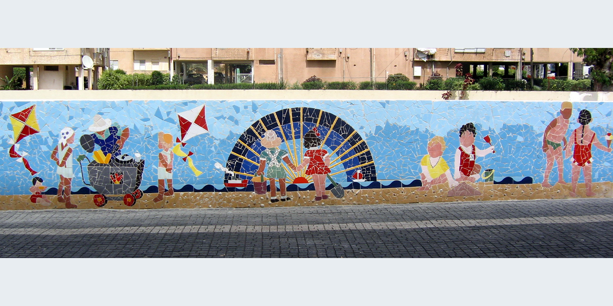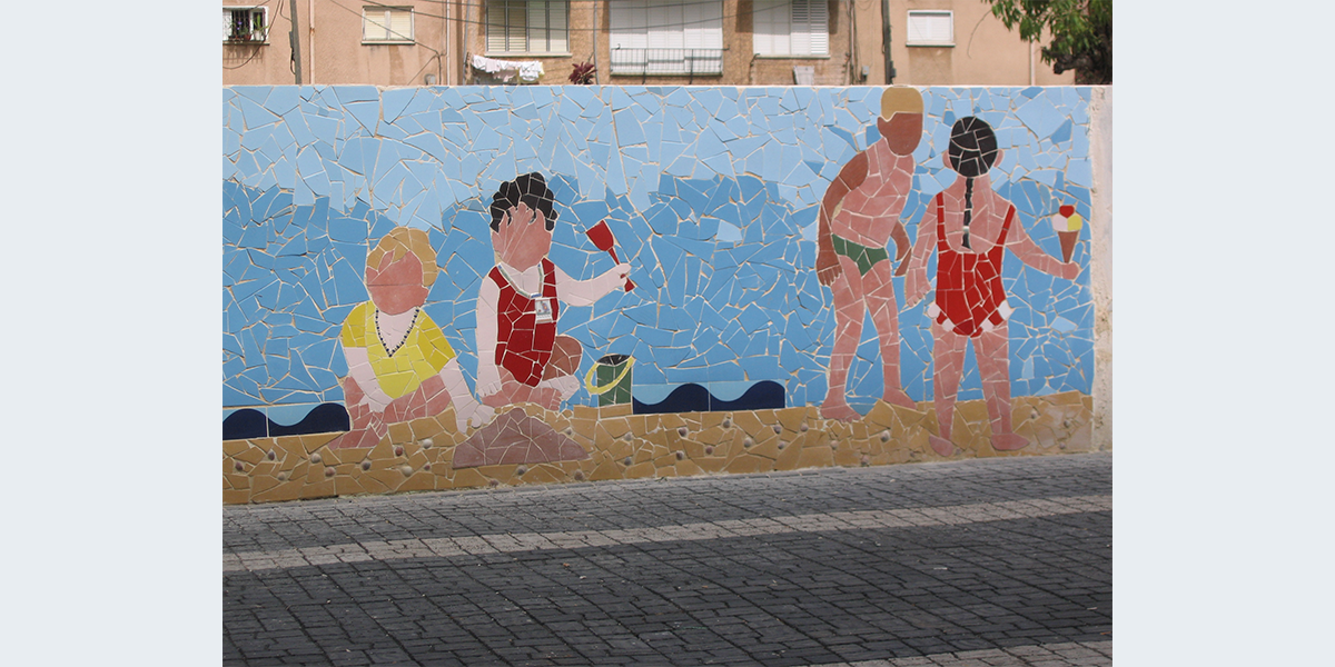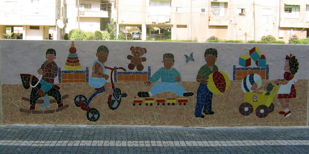 משחקי הילדים משנות החמישים בשילוב שירי ילדים מאותה תקופה לאורך קיר בניין העירייה החדש במדרחוב זד"ל סמוך לגן העירוני. היצירה נעשתה לפי תצלומים ישנים.