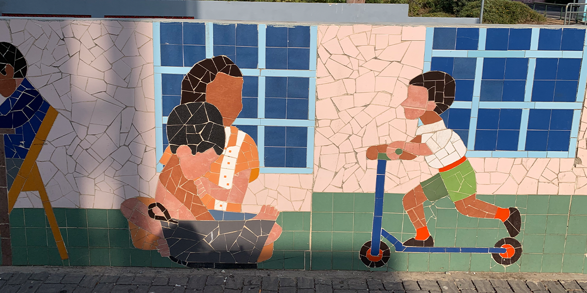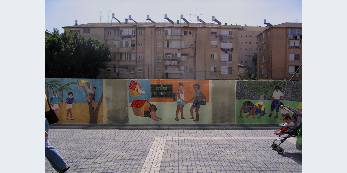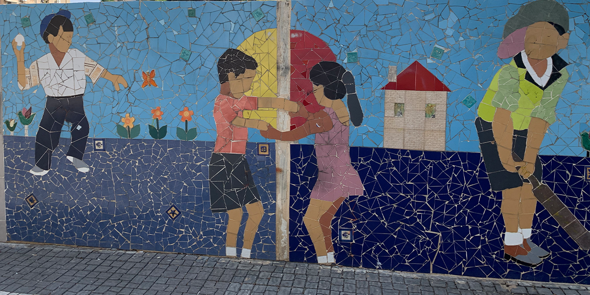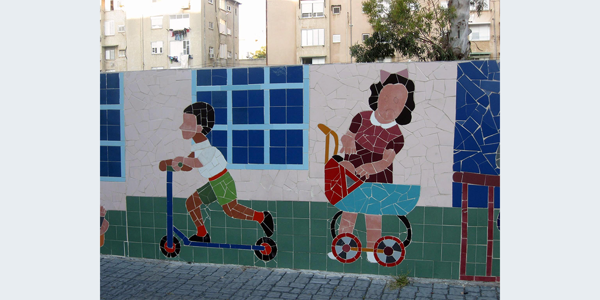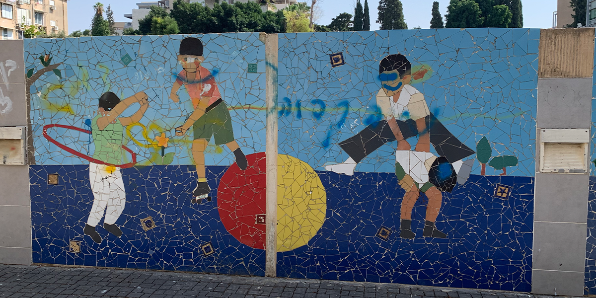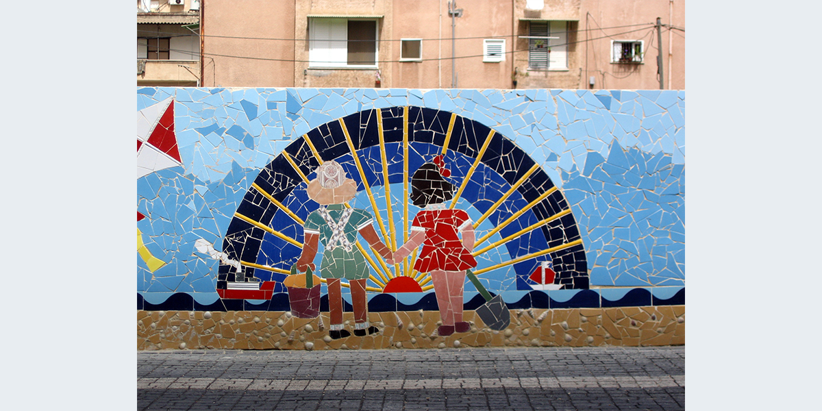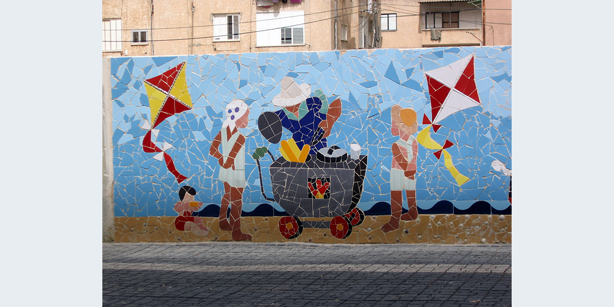 משחקי הילדים משנות החמישים בשילוב שירי ילדים מאותה תקופה לאורך קיר בניין העירייה החדש במדרחוב זד"ל סמוך לגן העירוני. היצירה נעשתה לפי תצלומים ישנים.