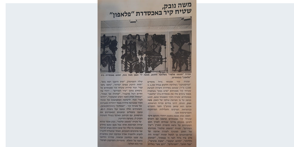 משה נובק (1930–2012) היה אמן רב תחומי, תושב חיפה, עיצב שטיחי קיר אמנותיים, היה צורף, צייר ופסל. הציג עשרות תערוכות יחיד ברחבי ישראל ובעולם. על פועלו למען עירו, הוענק לו "אות יקיר העיר חיפה".