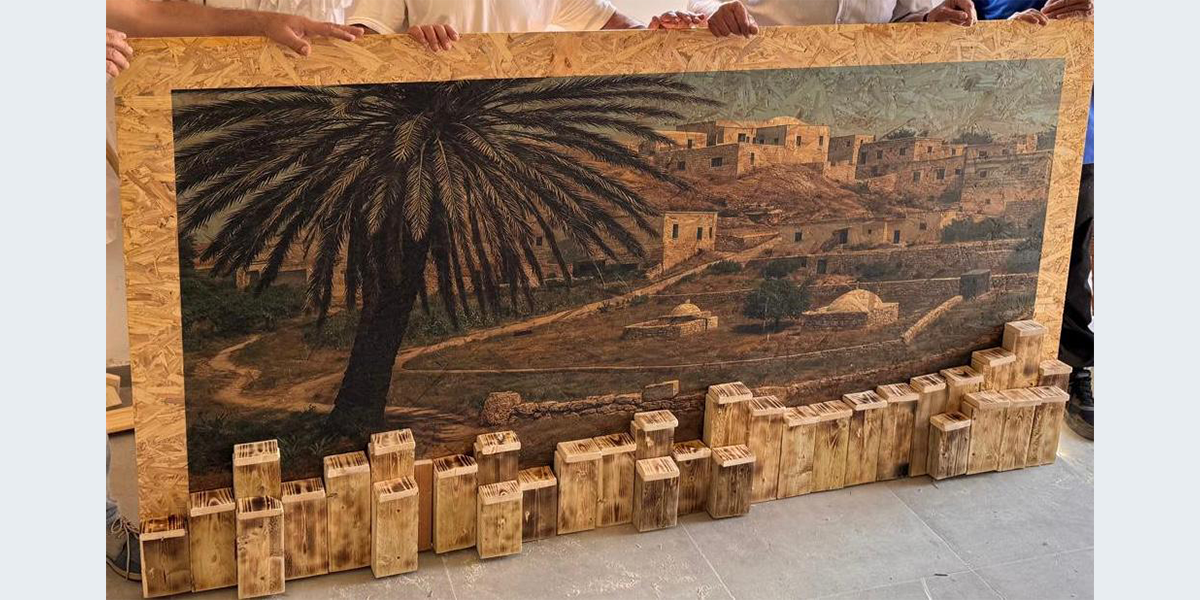 את הציור צייר האמן עלי שאהין עם תלמידיו מבית הספר אבן סינא.
