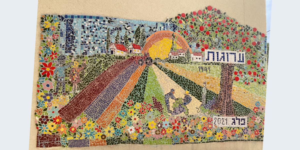 את הפסיפס על הקיר הכינה האמנית מלי אשל־שדה בשיתוף הגמלאיות במושב ערוגות. העבודה החלה בשנת 2021 והסתיימה בשנת 2026.