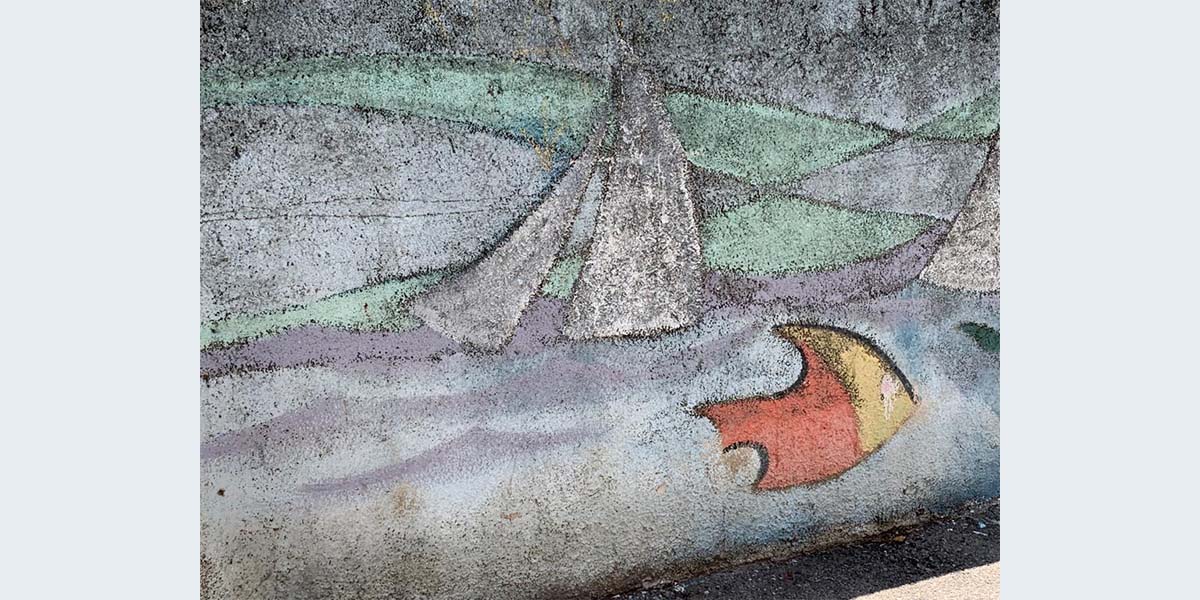 מצב השתמרות היצירה: הלכה ודהתה וגם נוספו עליה כתובות גראפיטי חדשות.