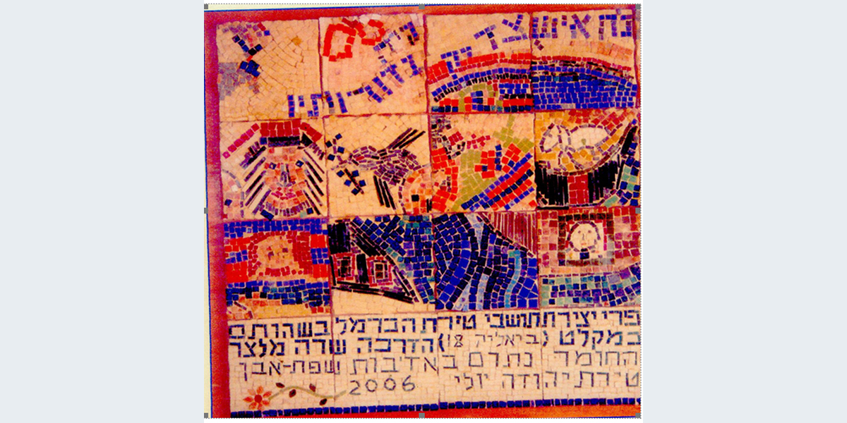 את הפסיפס הכינו בהנחיית ד"ר שרה מלצר יושבי מקלט בטירת כרמל במהלך מלחמת לבנון השנייה. בפסיפס מתואר סיפור נוח והמבול.