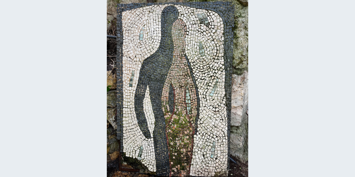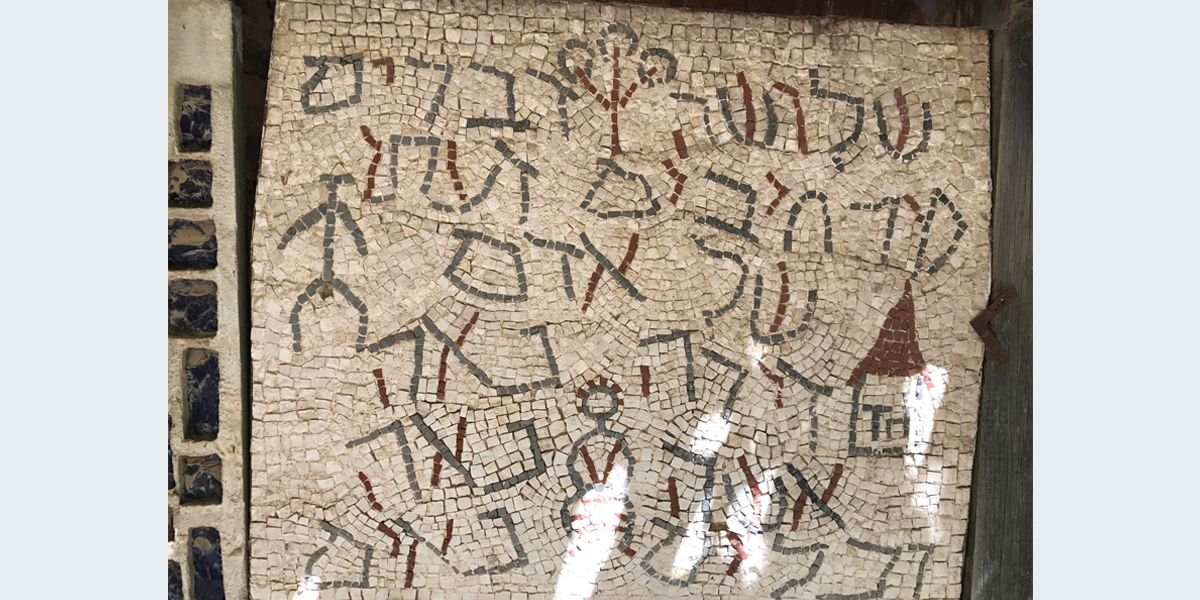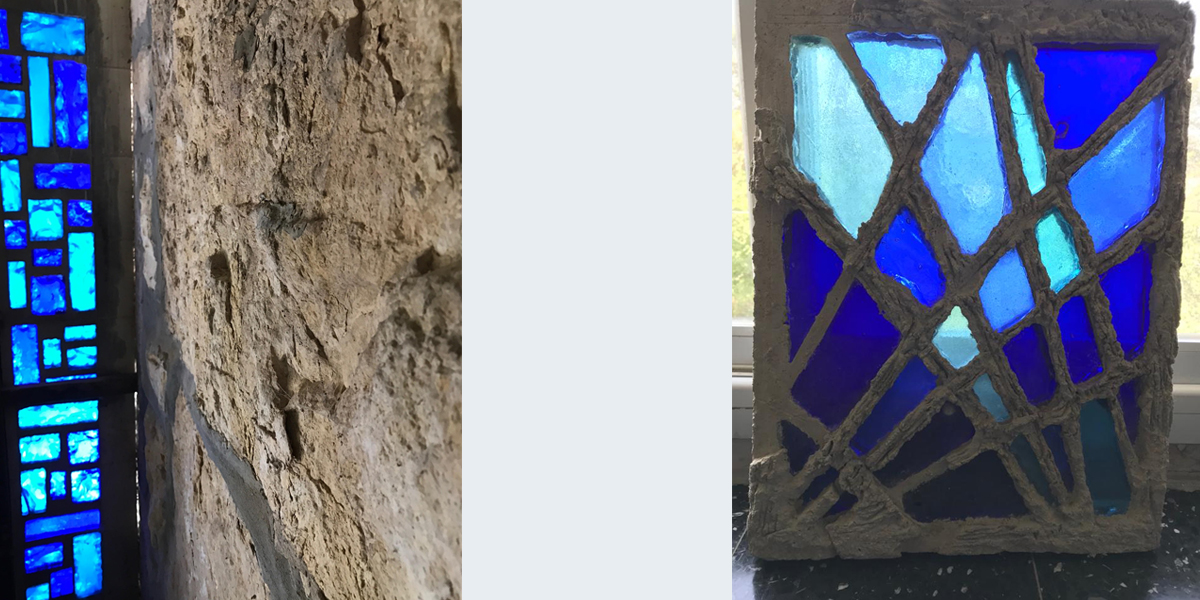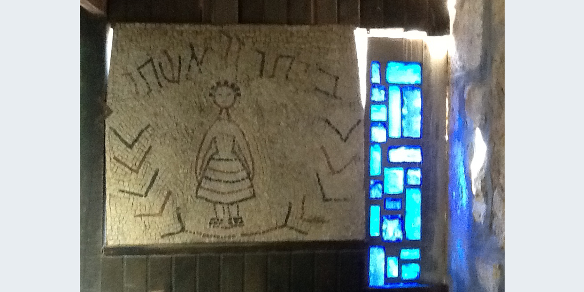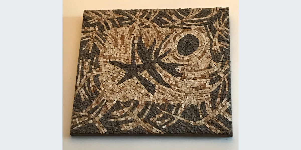 פסיפסים (1956) וויטראז'ים (1961, כחול), דגם רצפת בית כנסת 1974 בבית משפחת הנריק.