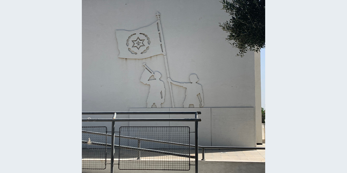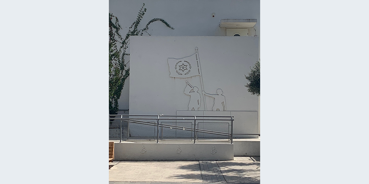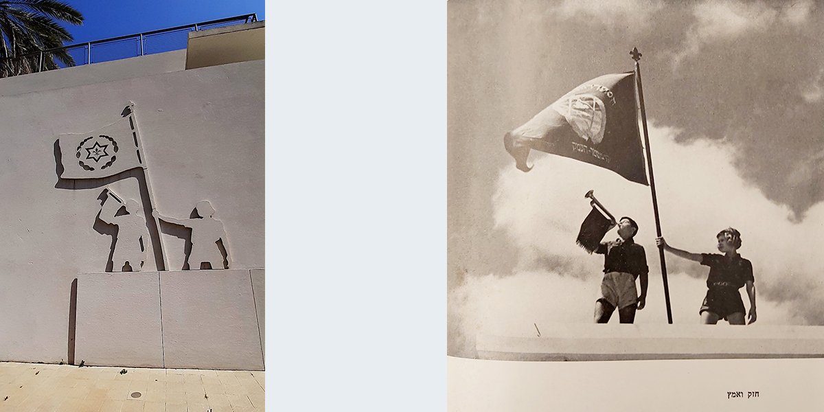 התבליט נוסף ל"בית הגדול" כששופץ בשנת 2017, והוא נעשה לפי תצלום איקוני שמצוי בארכיון משמר העמק: נערה אוחזת בדגל ונער מחצצר.