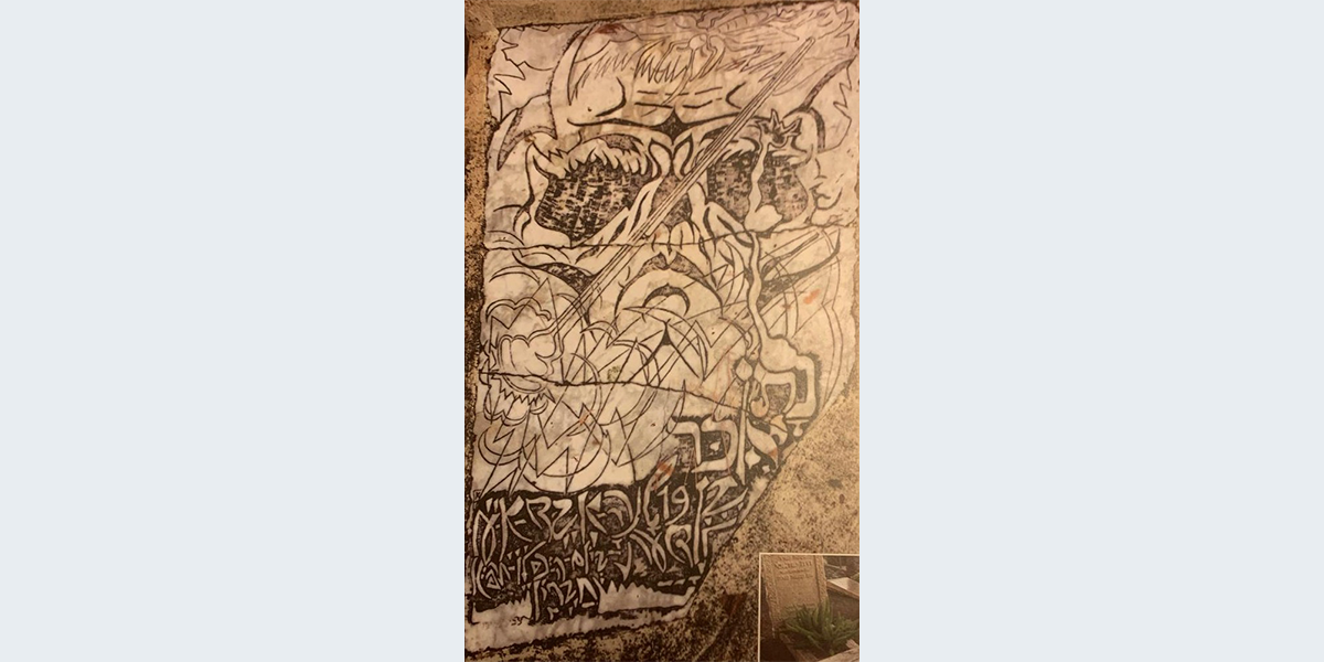 את הציור על המצבה של נתן איכר – כינויו של ארנסט פולאק – (1900–2020) צייר האמן אריה אלואיל, חבר ביתניה עילית.