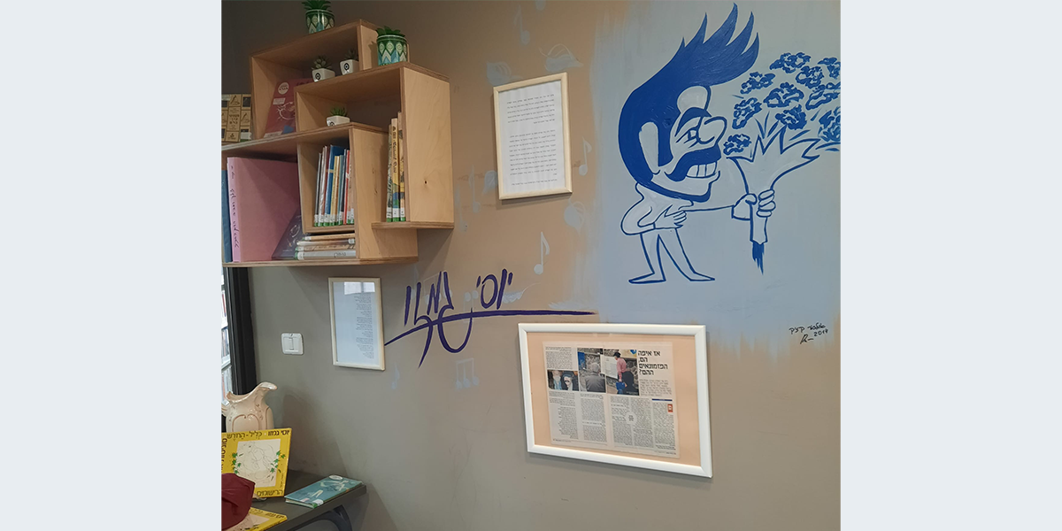 יוסי (יוסף) גַמְּזוּ (1938–2020) היה משורר, מתרגם ופזמונאי ישראלי, פרופסור לספרות עברית. מראשית שנות האלפיים התגורר בעיר קצרין, ומכיוון שכך הקדישו פינה לכבודו בספרייה. את הקריקטורה של זאב העתיקה האמנית אולסיה קזיק לקיר.