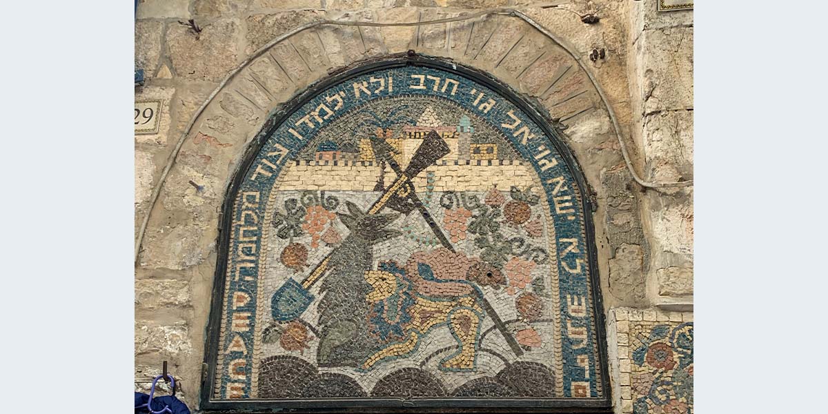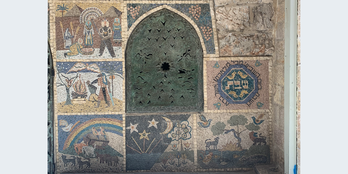 סיפורי המקרא בפסיפס על קיר ברובע היהודי בירושלים בקו התפר בין השוק היהודי לערבי ובו מוטיבים מכל הדתות. הפסיפס משולב בעבודות ברזל בשער ובחלון כתוב: "וזאת התורה אשר עם משה לפני כל בית ישראל".