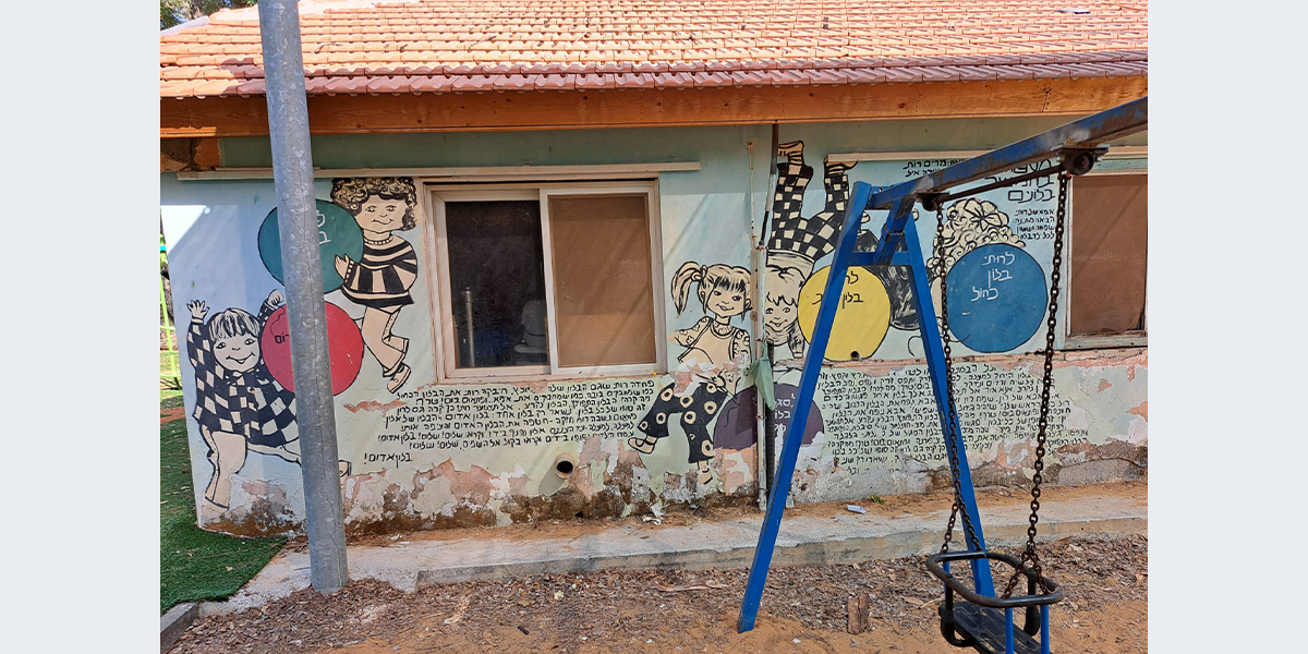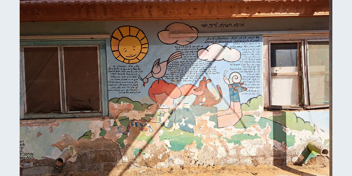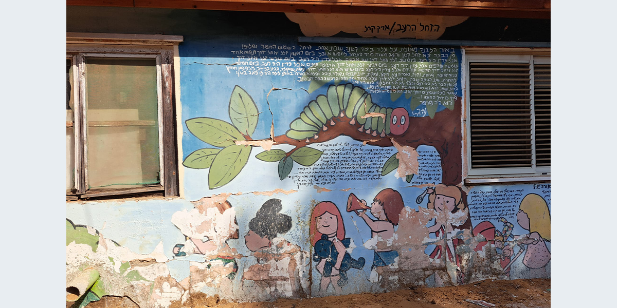 על מבנה אחד הגנים ציירה רותם בלומנפלד ציורים ספרי ילדים אהובים: דירה להשכיר (איור: שמוליק כץ), ברכבת יושבת ארנבת, מעשה בחמישה בלונים (איור: אורה אייל), איילת מטיילת (איור: רינת הופר), הזחל הרעב (איור: אריק קרל)