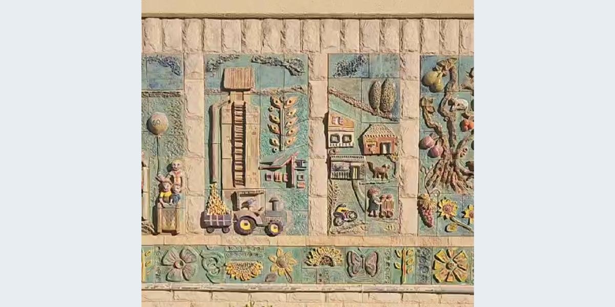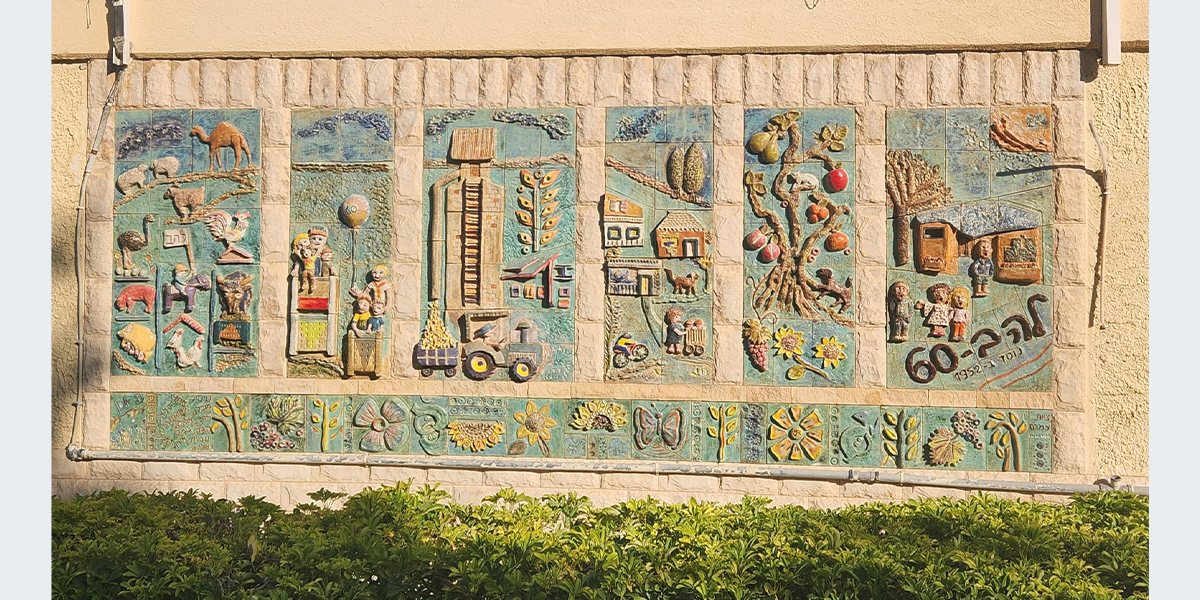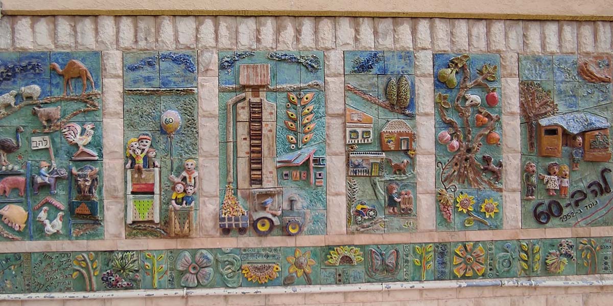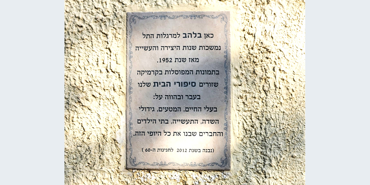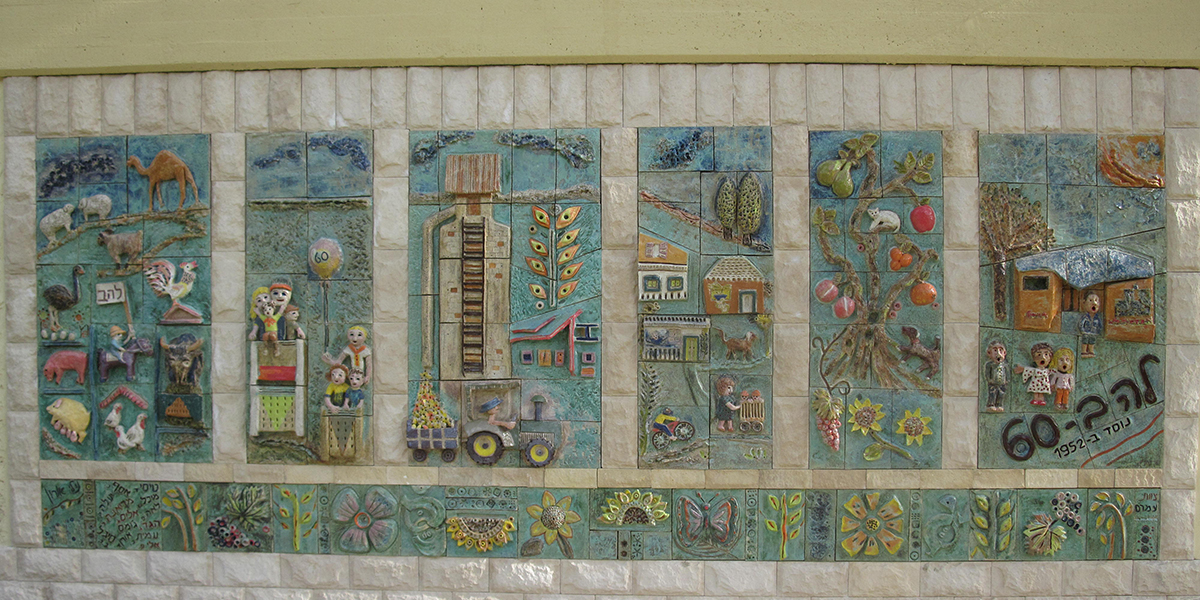 את היצירה עשתה לכבוד חגיגות ה־60 של קיבוץ להב האמנית נילי אורון, והשתתפו בהכנתה חברי הקיבוץ והילדים. הענפים השונים של הקיבוץ מיוצגים בתבליט; משמאל: ענפי החי: דיר, רפת, לול, גמלים, יענים ו… חזירים; ענף החינוך, הפלחה, בתי הילדים, המטעים למיניהם והתרבות. על חדר האוכל אפשר לראות את התבליט שיצרה נילי אורון והוא מעטר אותו עד היום.