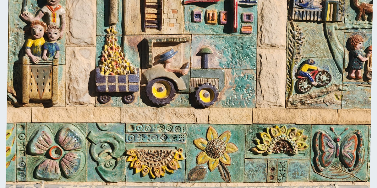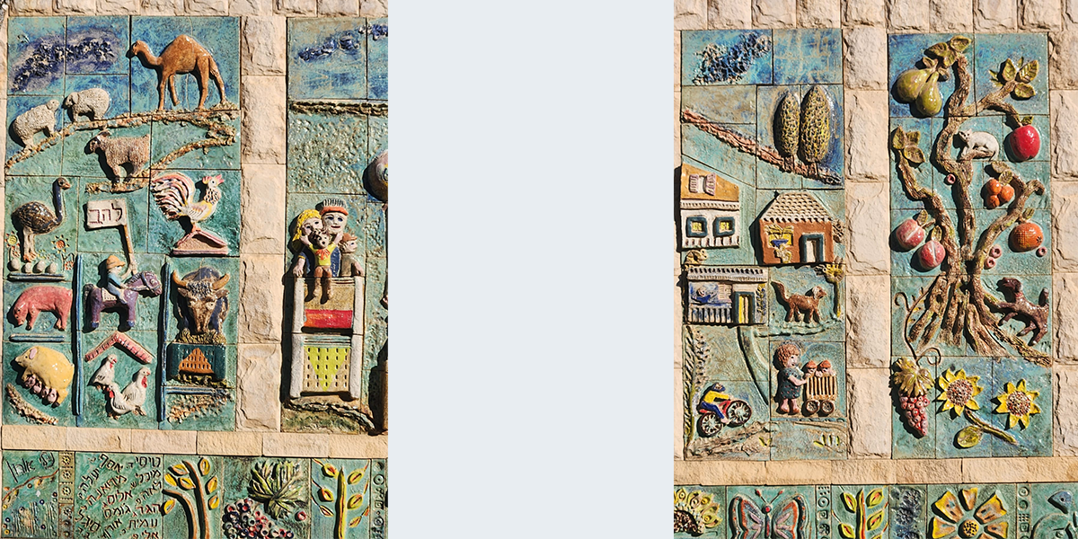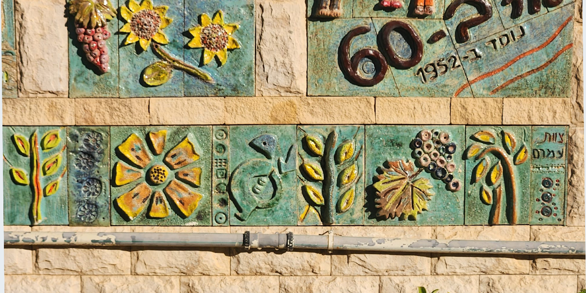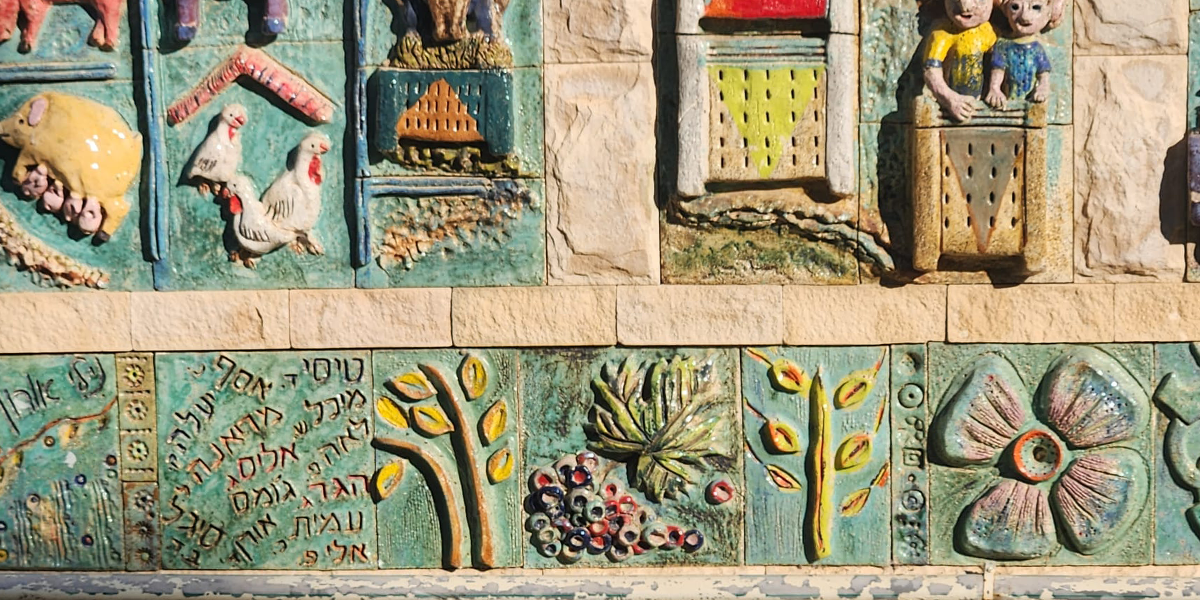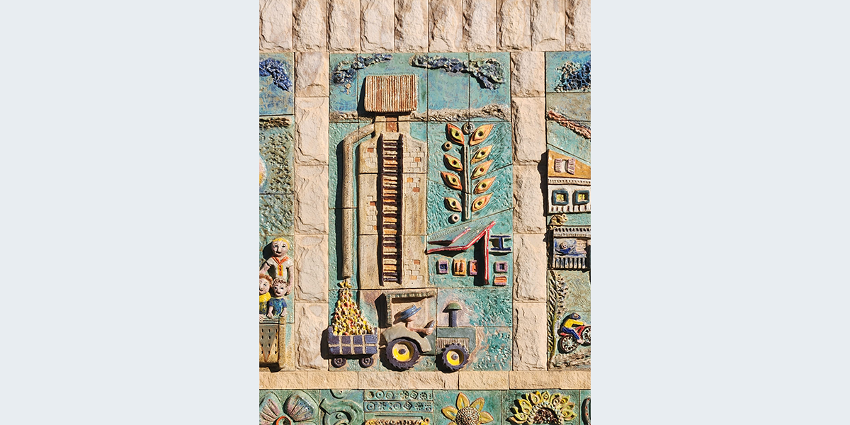 את היצירה עשתה לכבוד חגיגות ה־60 של קיבוץ להב האמנית נילי אורון, והשתתפו בהכנתה חברי הקיבוץ והילדים. הענפים השונים של הקיבוץ מיוצגים בתבליט; משמאל: ענפי החי: דיר, רפת, לול, גמלים, יענים ו… חזירים; ענף החינוך, הפלחה, בתי הילדים, המטעים למיניהם והתרבות. על חדר האוכל אפשר לראות את התבליט שיצרה נילי אורון והוא מעטר אותו עד היום.