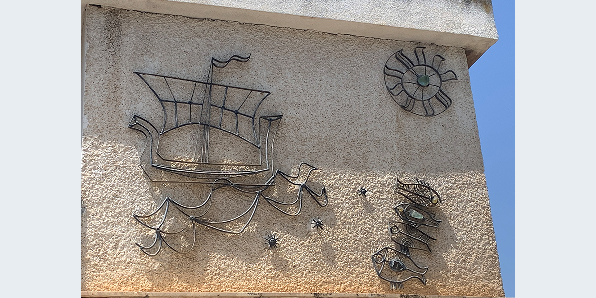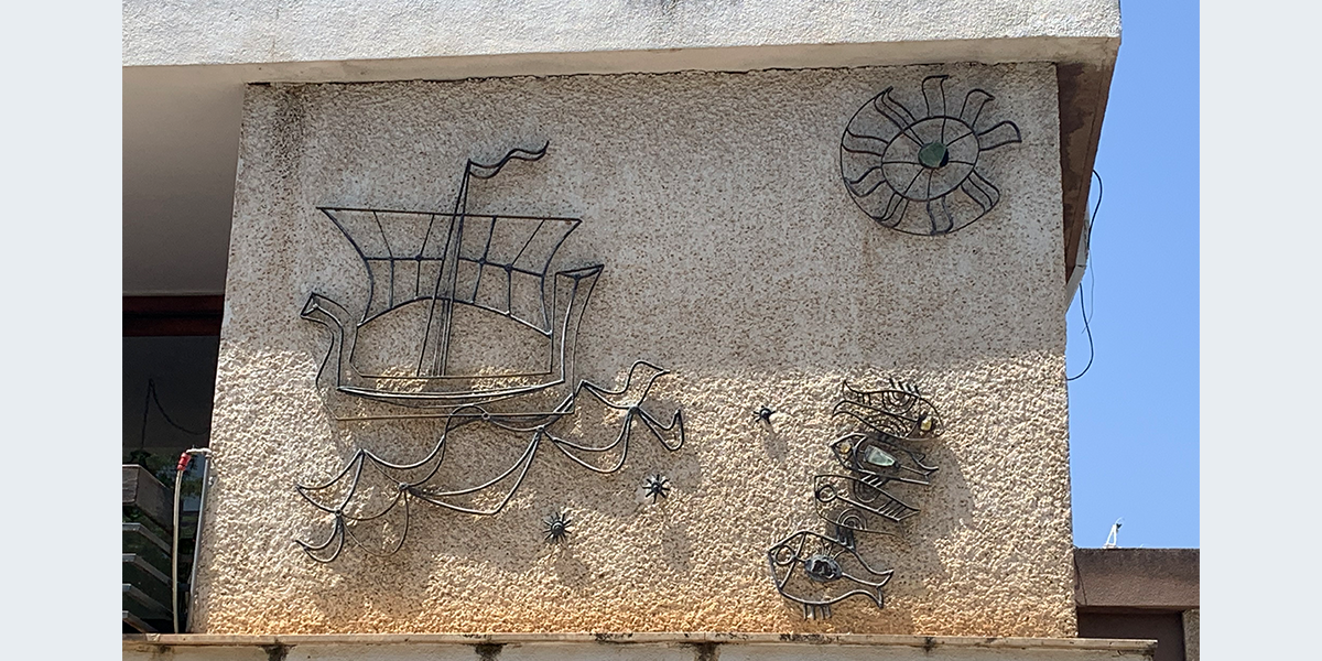 הצייר אריק קורן נולד ב־1931 בגרודנה פולין (כיום הוֹרַדְּנַה בלארוס). בגיל חמש עלה עם הוריו לארץ והם התיישבו בקיבוץ אשדות יעקב. כבר בצעירותו ניכרו בו כישרונות אמנותיים, וכיוון שבאותה עת התגורר בקיבוץ הצייר יחזקאל שטרייכמן, הוא פרש את חסותו על הנער. ב־1952 אחרי שירותו הצבאי השתתף אריק קורן בסמינר אוהלו, שבו הדריך הצייר ליאו רוט אמנים מן הקיבוצים. שנה אחר כך השתתף גם בסדנת ציורי פרסקאות שהנחה הצייר שלדון שונברג בבית איתמר באפיקים. ב־1954 למד בקורס למורי ציור בסמינר הקיבוצים באורנים, ובין מוריו היו הציירים פרלי פלציג, מרסל ינקו והפסל דוב פייגין. היכרותו עם אמנות הקרמיקה החלה ב־1957 בעין הוד בהדרכתו של האמן האיטלקי עמנואל לוצ'טי. לאחר מכן הוא נסע לאיטליה והשתלם שם אצל לוצ'טי וחבריו בעבודת הקרמיקה ובטכניקת הסגרפיטו. בעקבות זאת יצר את ציורי הסגרפיטו הראשונים שלו בבית מרדכי הלפרין בקריית חיים (1957), ואחר כך עשה את ציור ארבע העונות במועדון התרבות בקיבוצו ואת עבודתו הגדולה בבית הצנחן במעגן. ב־1959 נסע שוב לאיטליה ולמד באקדמיה לאמנויות יפות בוונציה טכניקות שונות של ציורי קיר. עם שובו ארצה יצר את ציורי הסגרפיטו בבית קרפ ובמדרשה לחינוך אוהלו בכינרת. בשנת 1962 זכה במדליית כסף עבור תבליט קרמיקה שהציג בתערוכה הבין־לאומית לקרמיקה בבואונס איירס בארגנטינה. ב־1963 עיצב מחדש את החזית של מגדל השעון ביפו, שילב בעבודה מסגרות מברזל וזכוכית צבעונית. הנושאים של העיטורים נלקחו מתולדות יפו לתקופותיה.