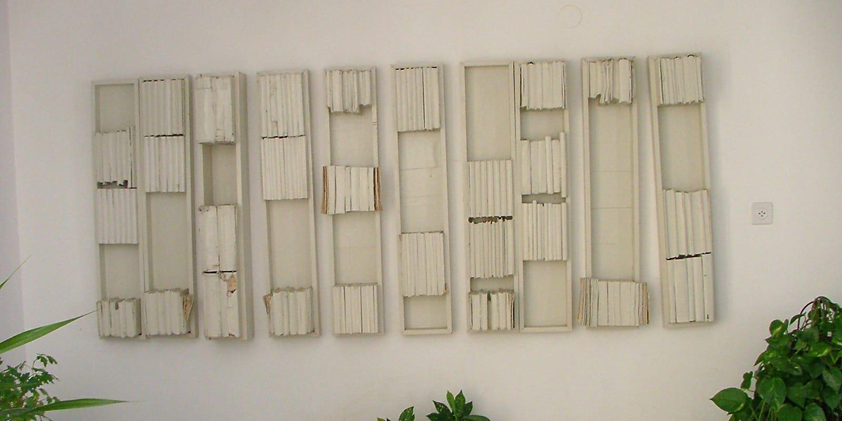 האמן בנה קוביות מעץ ובתוכן הניח ספרים שחתך – את הכול צבע בלבן. היצירה הוקדשה לספריית הקיבוץ.