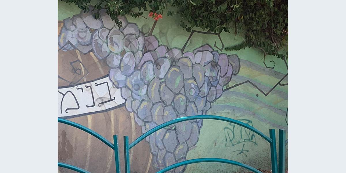 מגוון עשיר של צבעים מבטאים בציור הקיר את ההיסטוריוגרפיה של בנימינה, את סביבתה ואת האוכלוסיות החקלאיות שבה. אך לא רק ההיסטוריה הרחוקה היוותה השראה לרעיון שעומד מאחורי הציור אלא גם הווי החיים ורוח המקום של ימינו. מידי בוקר עשתה את דרכה אישה ערביה מג'יסר א־זרקא דרך בנימינה לשדות של גבעת עדה ללקט צמחי בר לבישוליה. בערב היא שבה באותו מסלול. בבוקר העגלה הייתה ריקה ובערב נראתה עמוסה בחציר ובצמחיה. דמותה של האישה בלטה מאד בשטח. בתוך הסואן היום יומי, על עגלה רתומה לחמור ובקצב של מאה שנה לאחור, התמידה עד יומה האחרון לעשות את דרכה הלוך ושוב. לצורך הציור, נעשו מניפולציות שונות לצלמה מבלי שתיפגע. האישה מופיע בציור בצד אחד של הגשר. בצדו האחר, מצוירות ארבע דמויות של איכרים המאפיינים את ראשית ההתיישבות החקלאית בבנימינה.