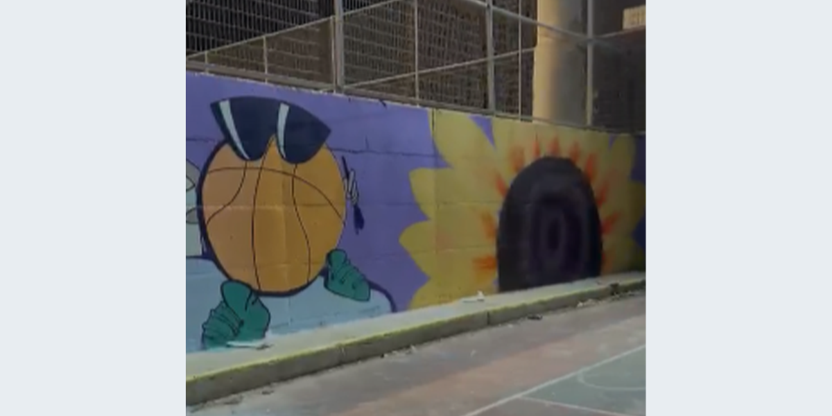 את הציורים צייר תלמידי מגמת אמנות בכיתות ז–ט ואחר כך ביצעו אותם על הקיר בהנחיית האמנית Sasha.