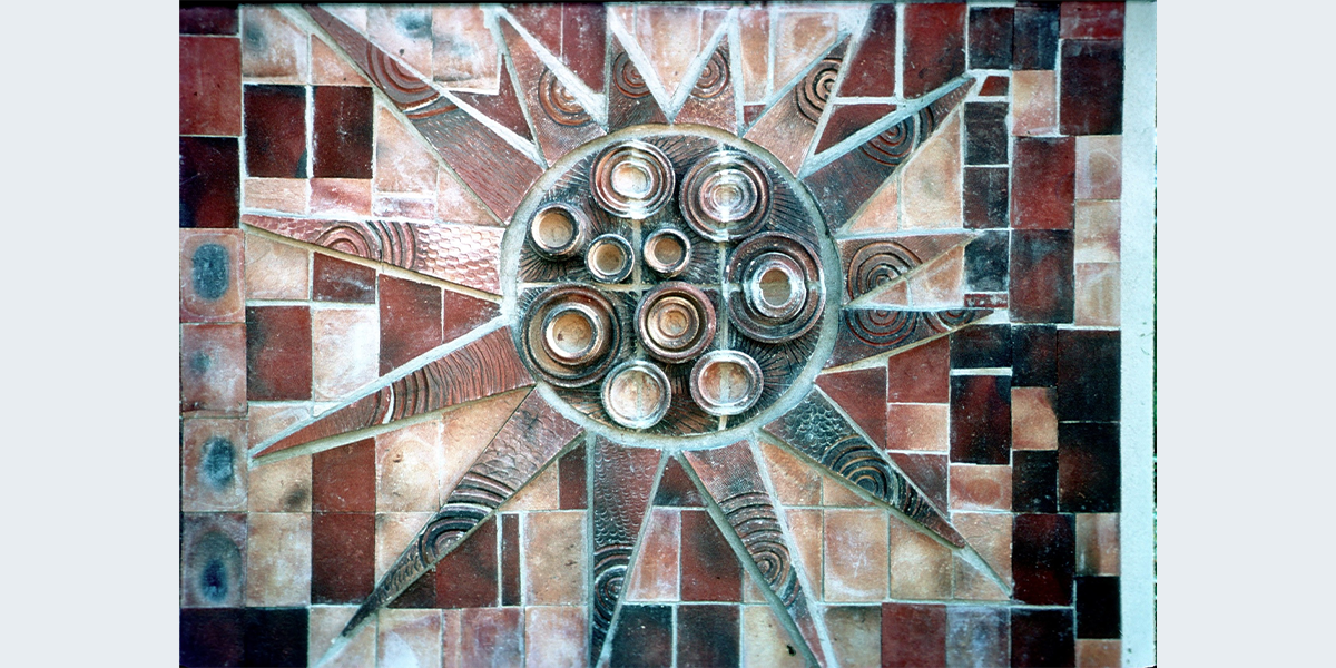 את העבודה יצרה האמנית רינה פלג בהנחייתו של האמן איש כפר מנחם, משה סעידי.