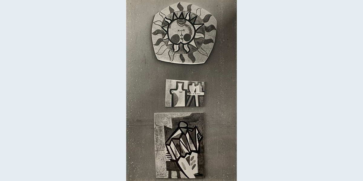 עיטורים בצבע על עץ, אשר קישטו את המועדון בקיבוץ.