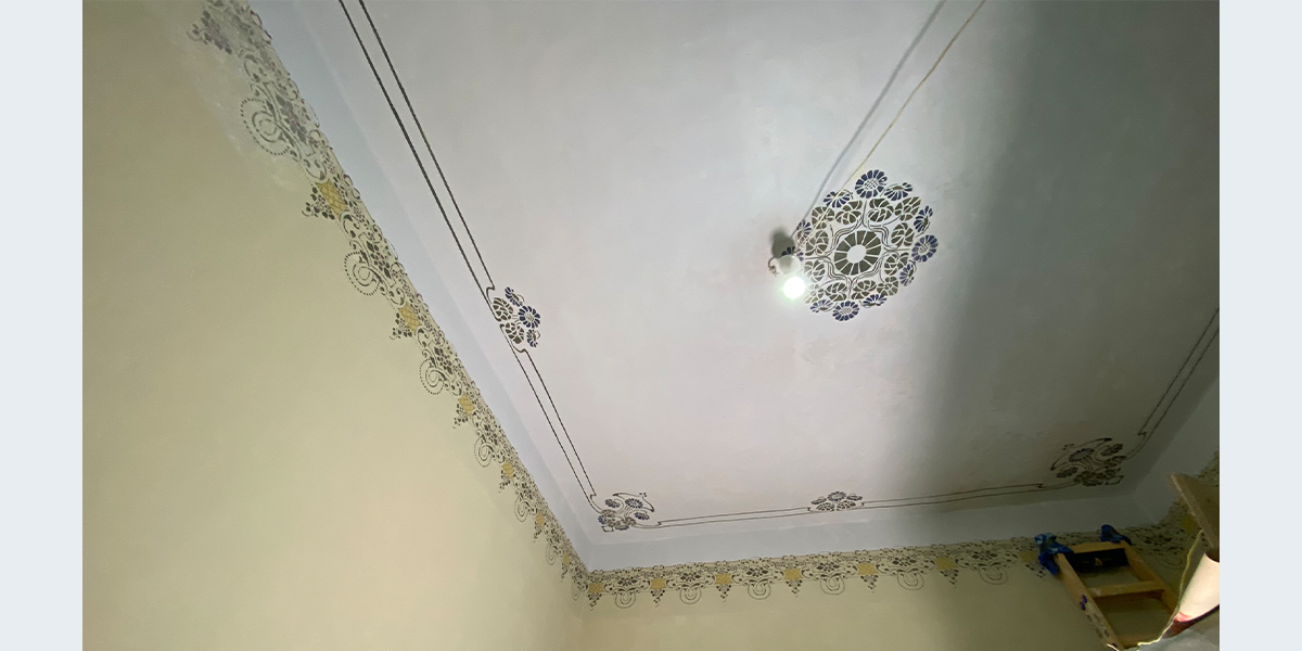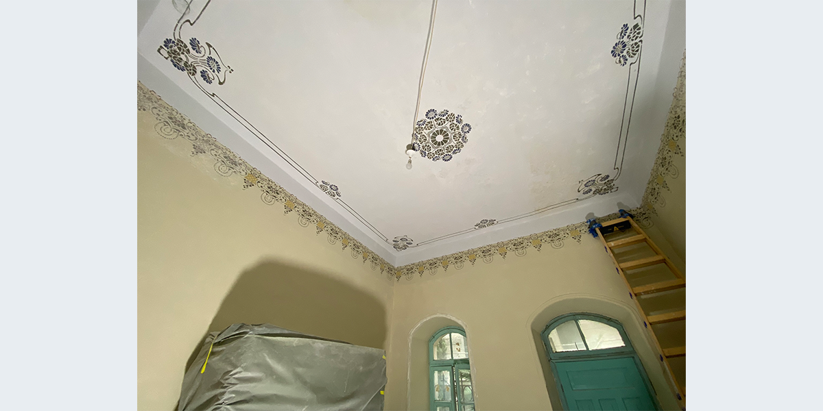 מצב השתמרות היצירה: בשנת 2023 שחזרו אמני סטודיו "תכלת" את ציורי התקרה בשני חדרים בבית הרב קוק בירושלים.