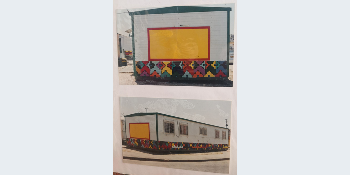 את העיטורים עשו משתתפי תוכנית "תגלית" בהנחיית האמנים נורית שני ודרור אשד. הציור נעשה על קרוון באתר שהוקם בגבעת המטוס ב־1991. האתר הוקם כדי לקלוט את גלי העלייה מאתיופיה.