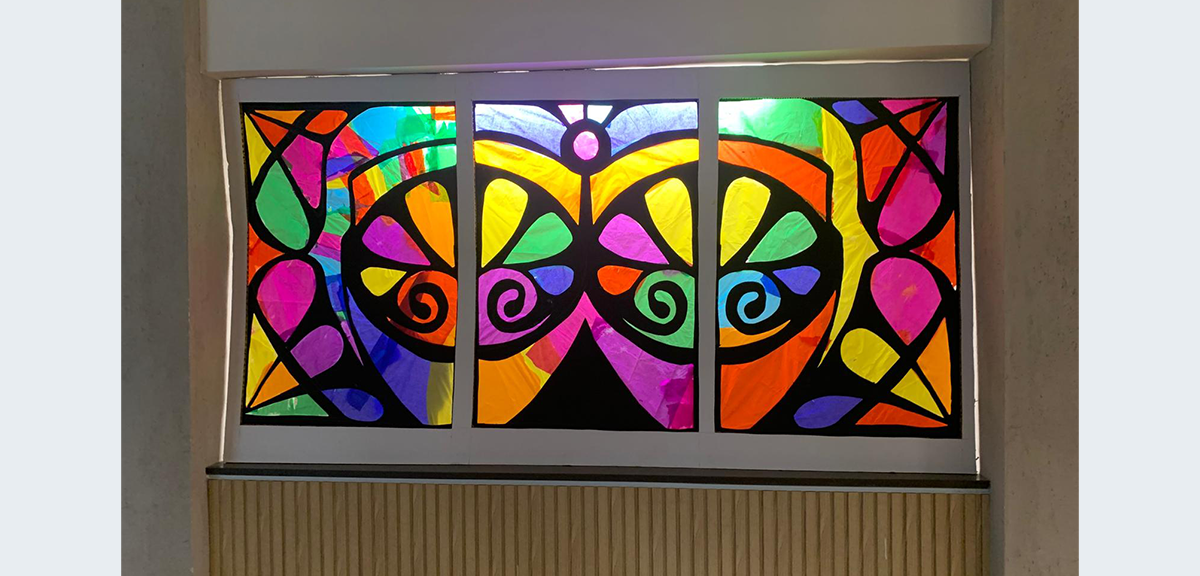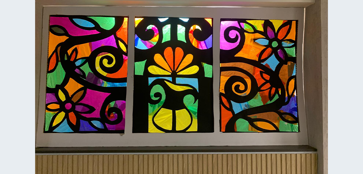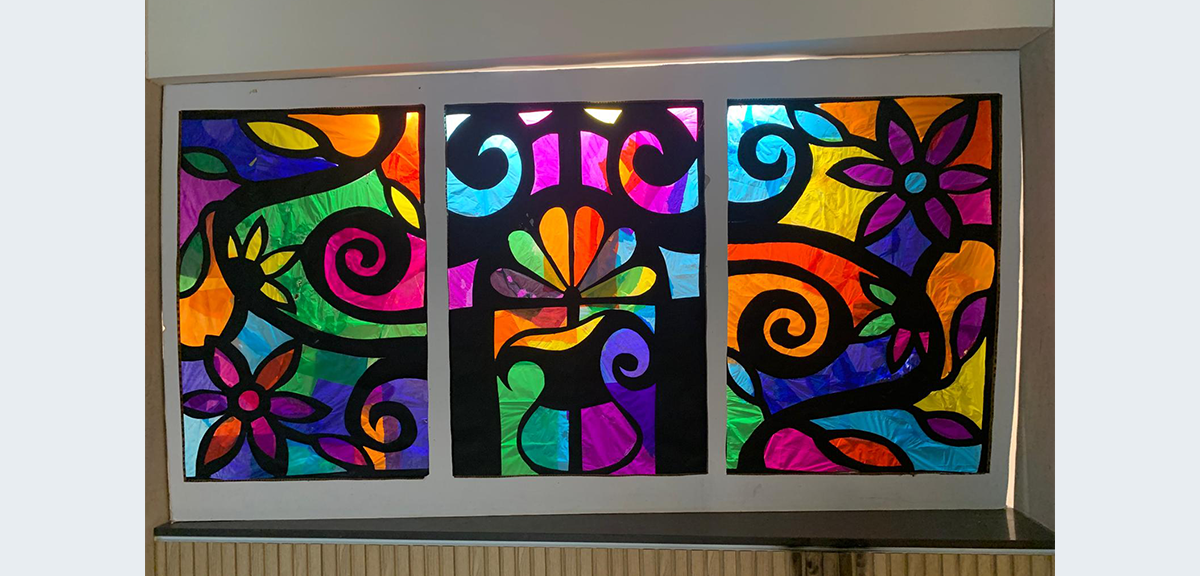 הוויטראז'ים נוצר בידי חברי הקיבוץ והילדים בהובלת ועדת התרבות. הבסיס הוא קרטון שחור ועליו הודבקו פיסות נייר משי צבעוני.
