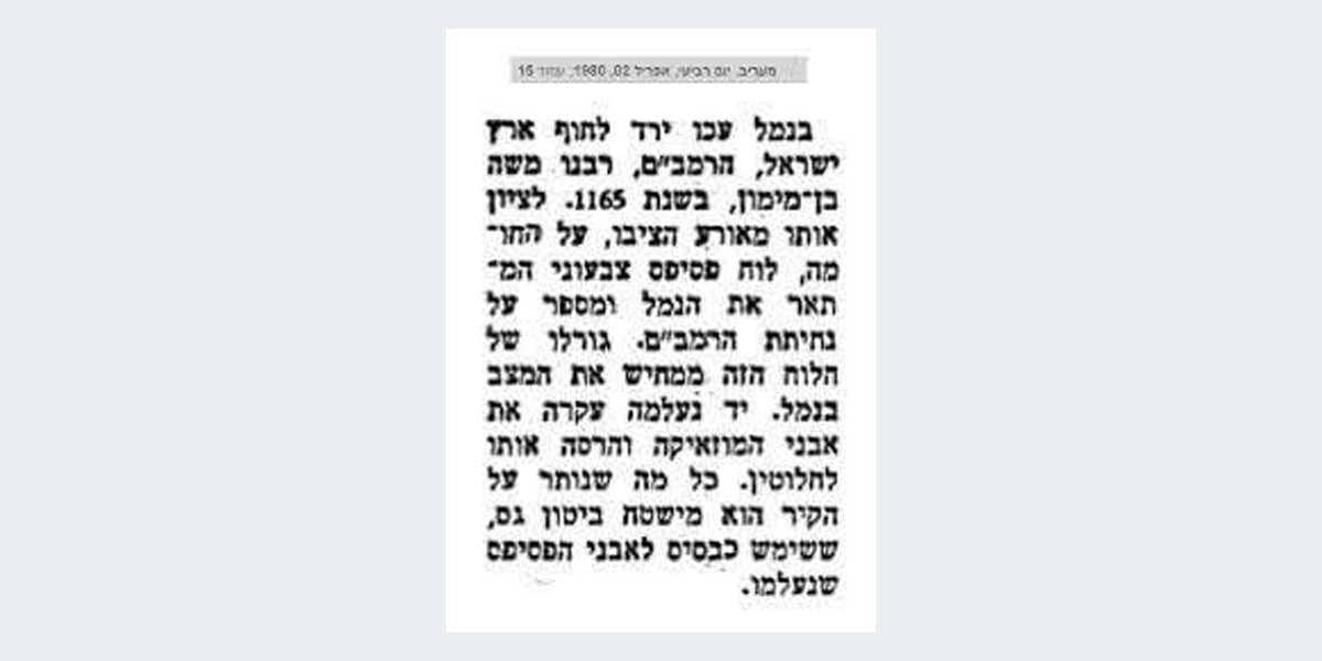 פסיפס הרמב"ם נמל עכו, קול העם, 3 בדצמבר 1959.