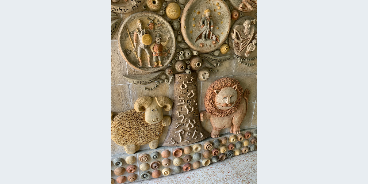 יצירה הנמצאת בכניסה לספריית בית הספר האזורי "צפית" בכפר מנחם, ובה סצנות מספרי מופת. שם היצירה והיצירות הספרותיות שבה נועדו להעביר את המסר המרכזי: חשיבות רכישת הדעת והלימוד.