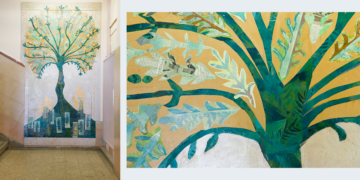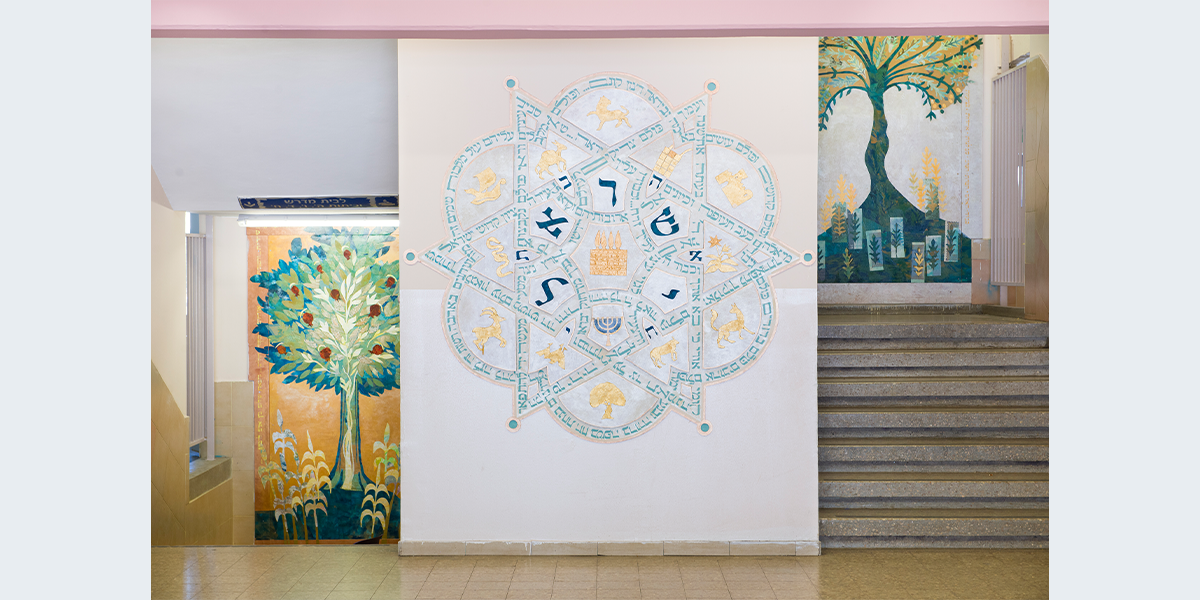 היצירה נעשתה בידי תלמידות בית הספר בהנחיית האמנית טל לוי ובמסגרת "אמן" – ניידת אמנות למגזר החרדי.