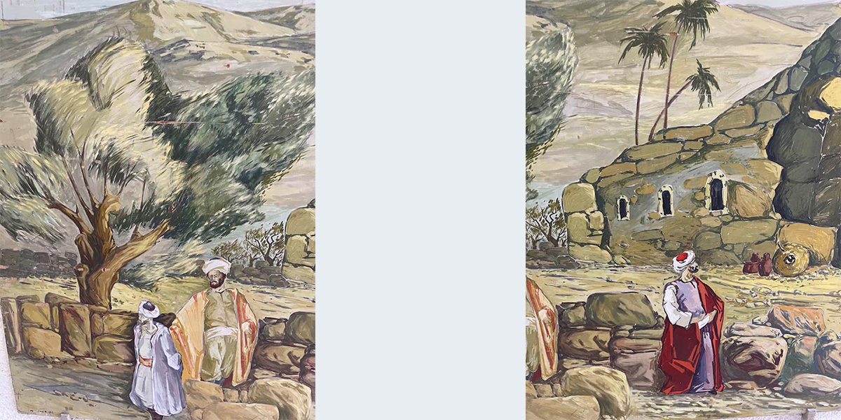 ציור קיר במלון אל מול אולם בית הכנסת, המתאר את פונדקא דלביא, פונדק דרכים שעמד בימי המשנה בדרך בין ציפורי לטבריה (בקרבת קיבוץ לביא של היום). הציור מראה את העוברים ושבים שבאו ללון בפונדק. "פונדקא דלוי" נזכר בתלמוד במסכת שקלים ז:.