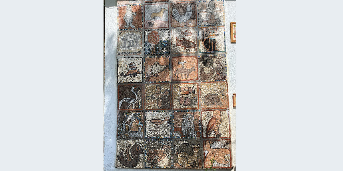 את הפסיפס עשו ילדים בהנחיית המורה ישראל מנשרי, וסייע בידם גם אב הבית שלמה אסטמקר. הפסיפס נעשה במסגרת התוכנית שיזמה ד"ר שרה מלצר.