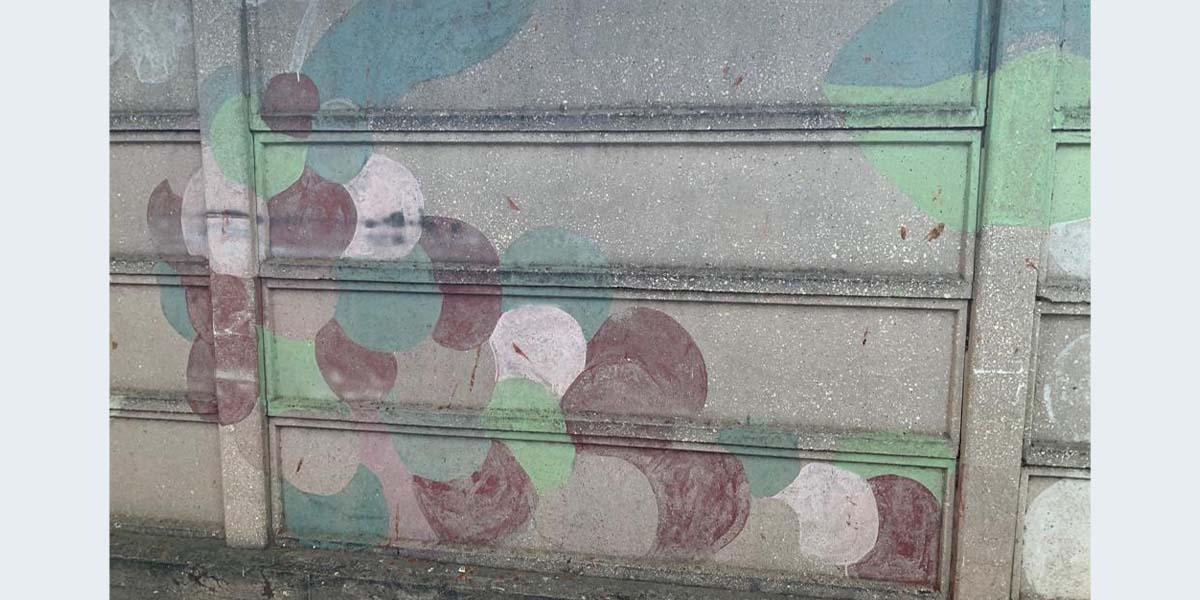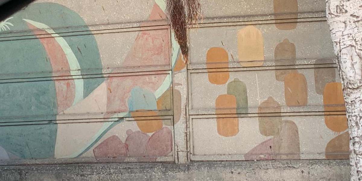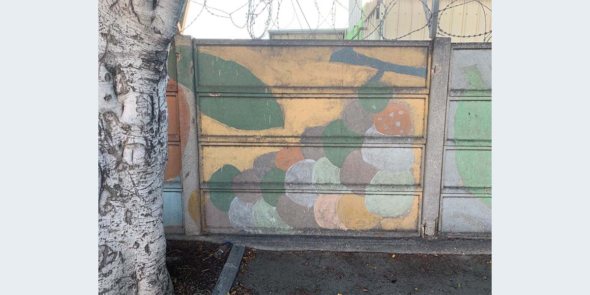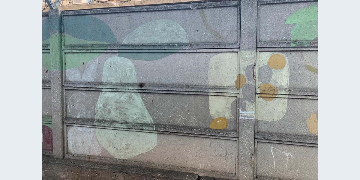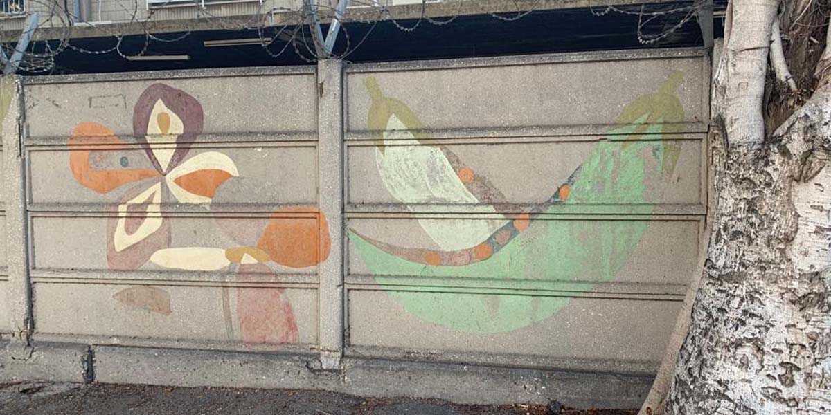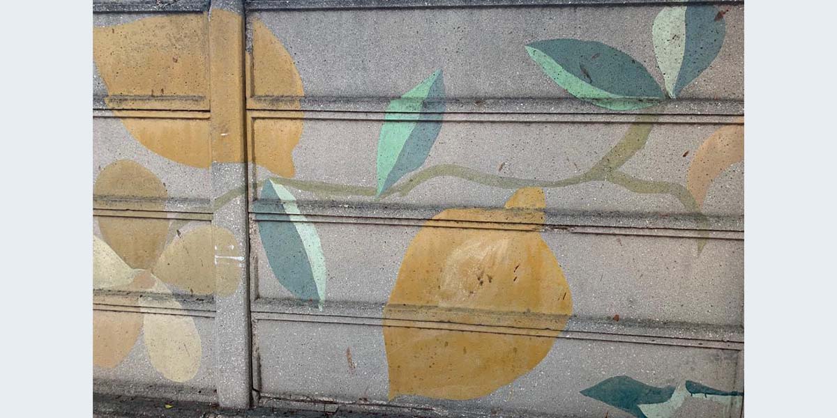 פֵרות וירקות לאורך גדר השוק הסיטונאי בחיפה. את הציור יזמו אנשי היחידה לשיפור פני העיר בעיריית חיפה.